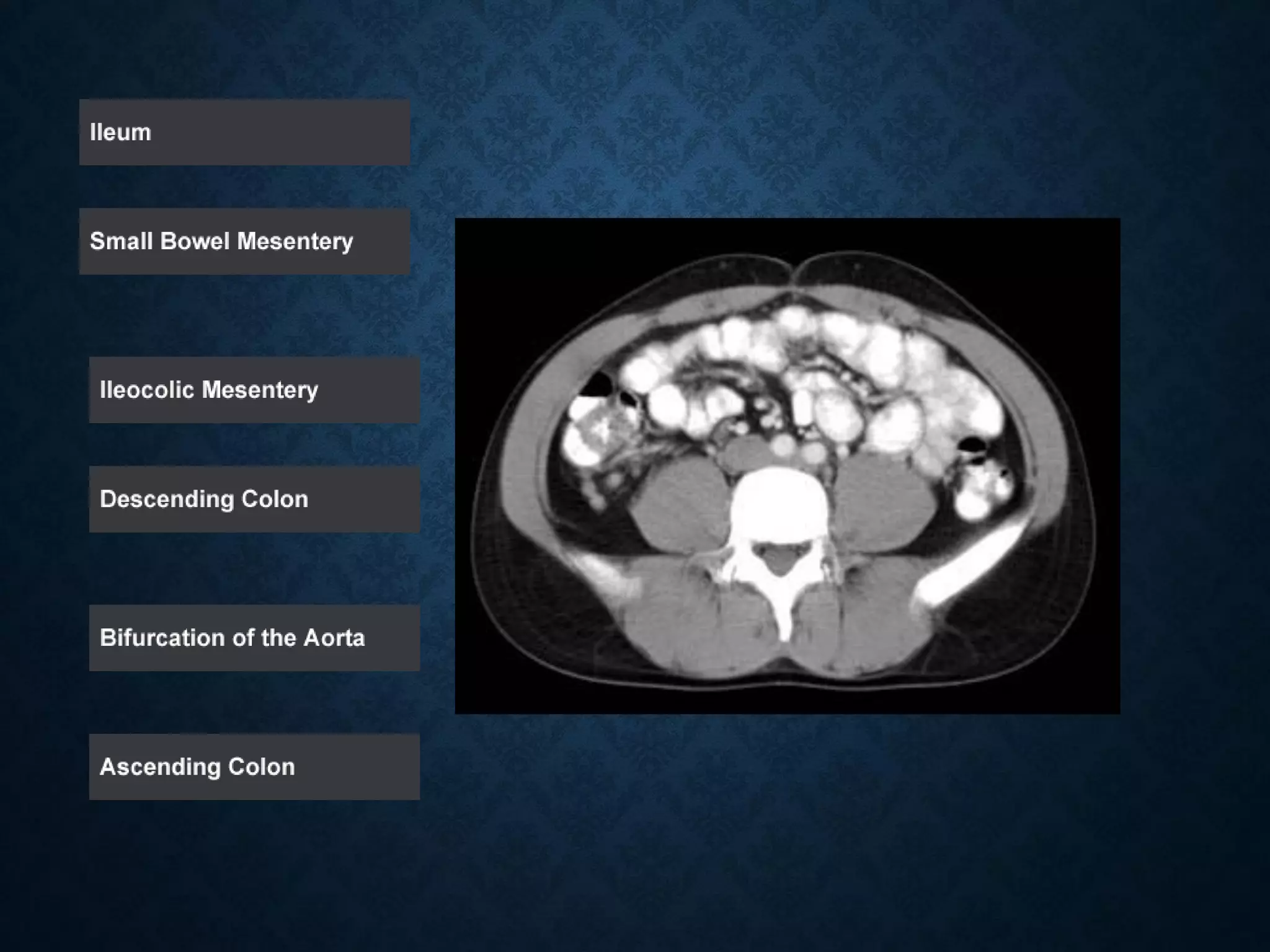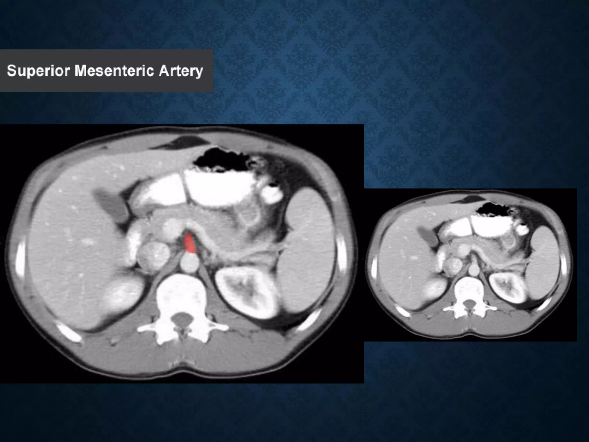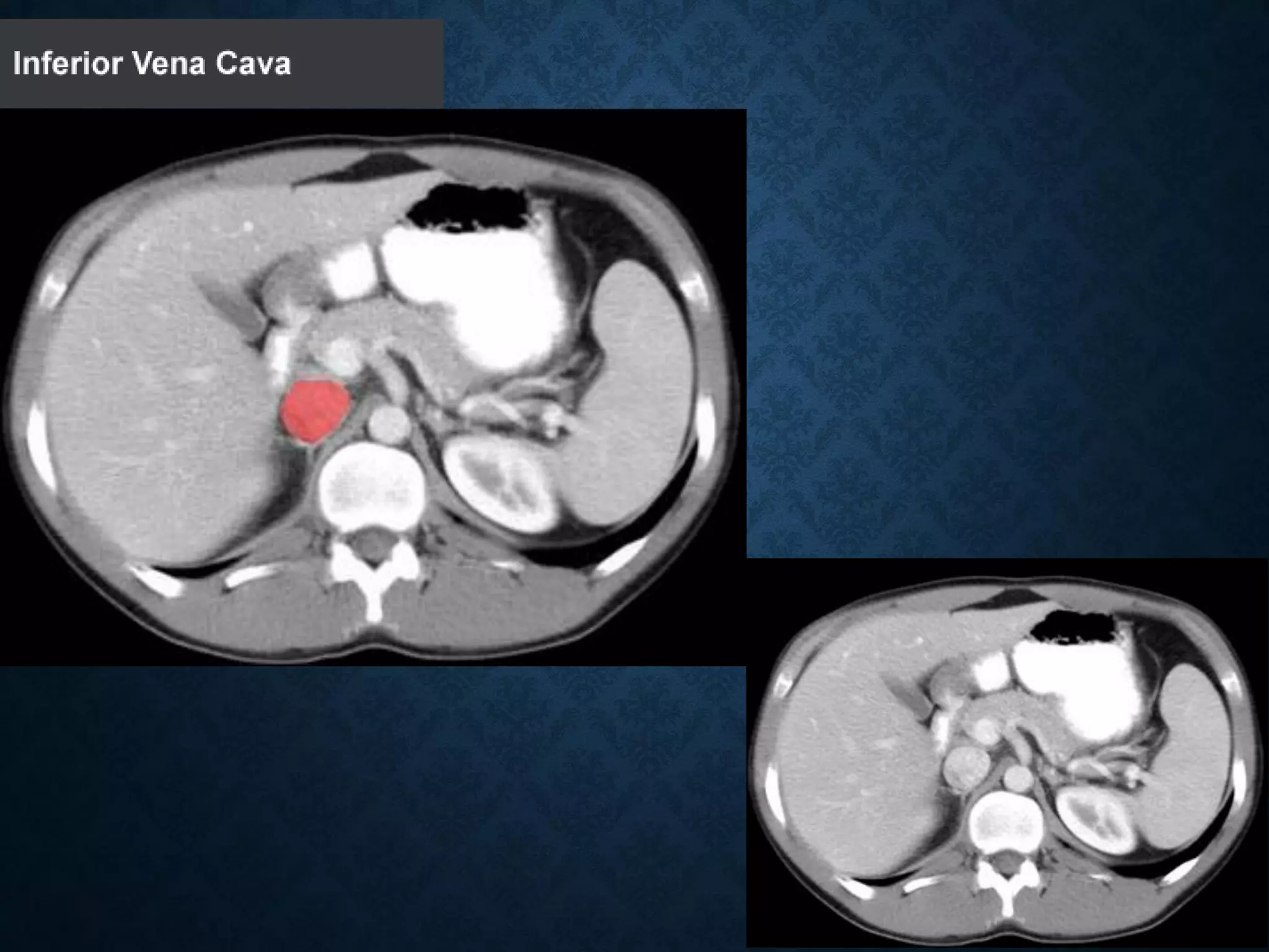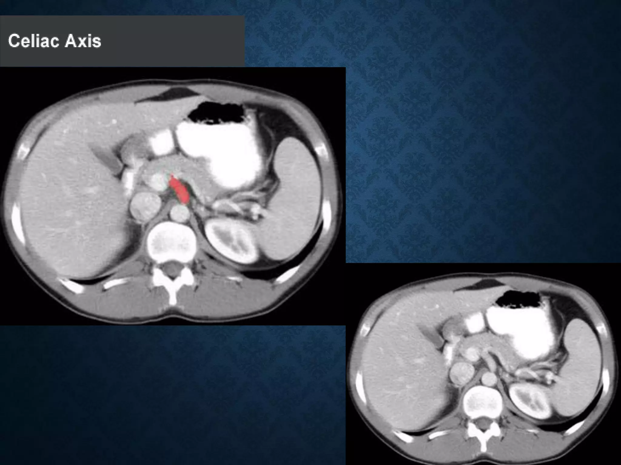 This document provides an anatomy tutorial on abdominal CT scans. It identifies and labels key abdominal structures visible on CT images, including the stomach, pancreas, inferior vena cava, celiac artery and its branches, superior mesenteric vein, abdominal aorta, ovaries, and rectum. The tutorial also notes the normal appearance and location of these structures to aid in anatomical identification on abdominal CT scans.