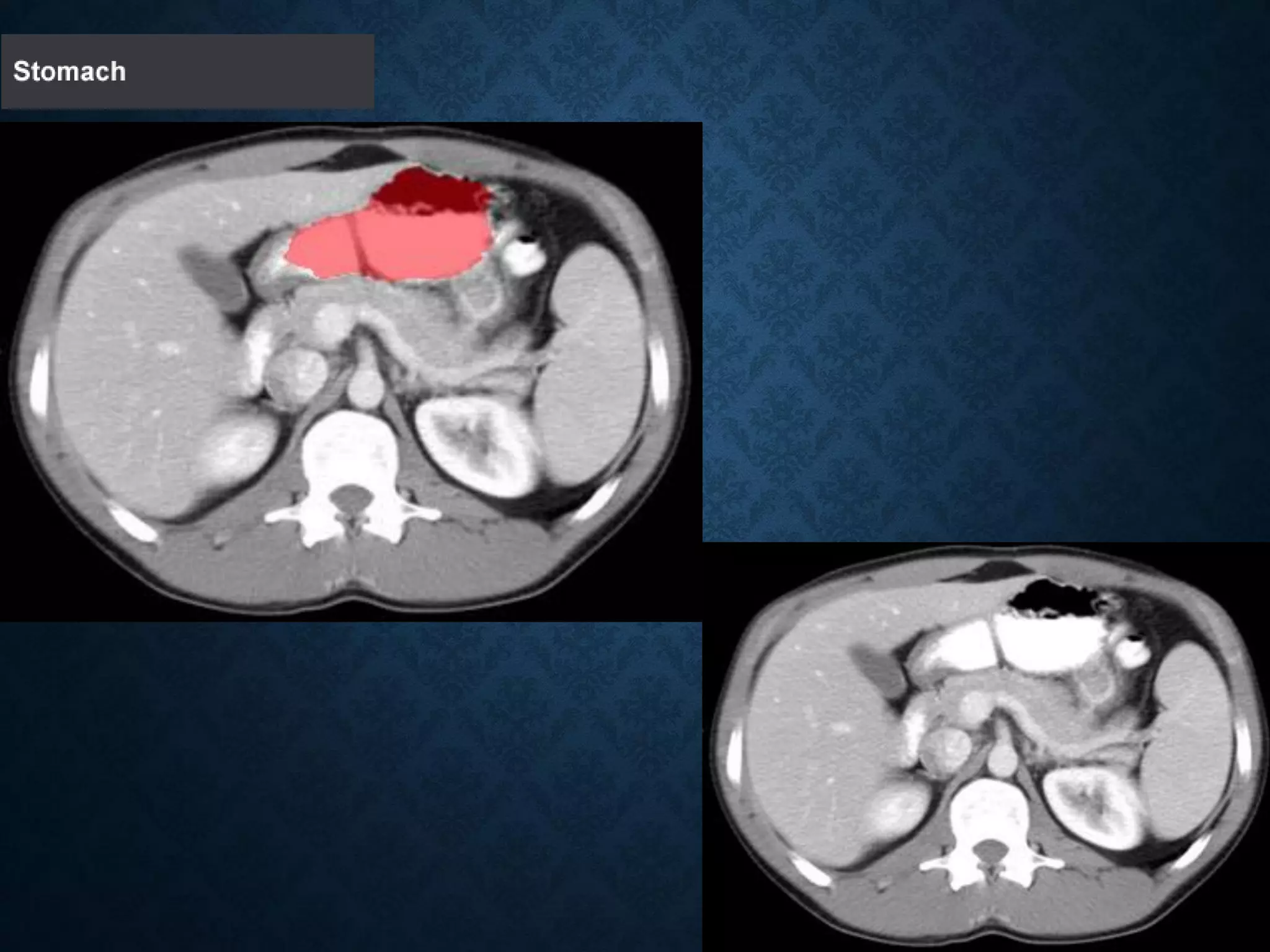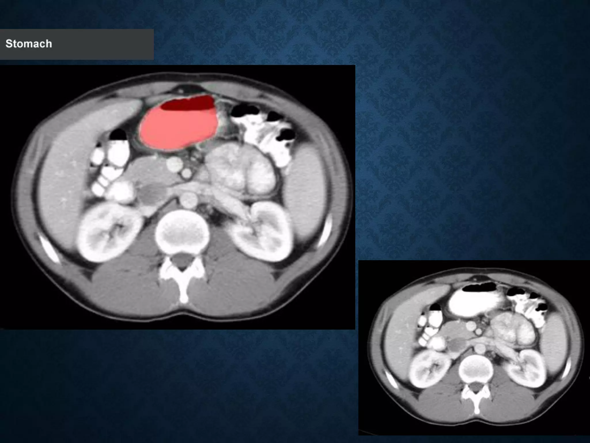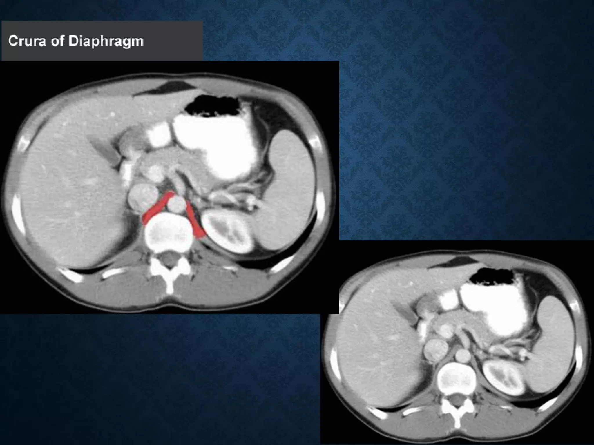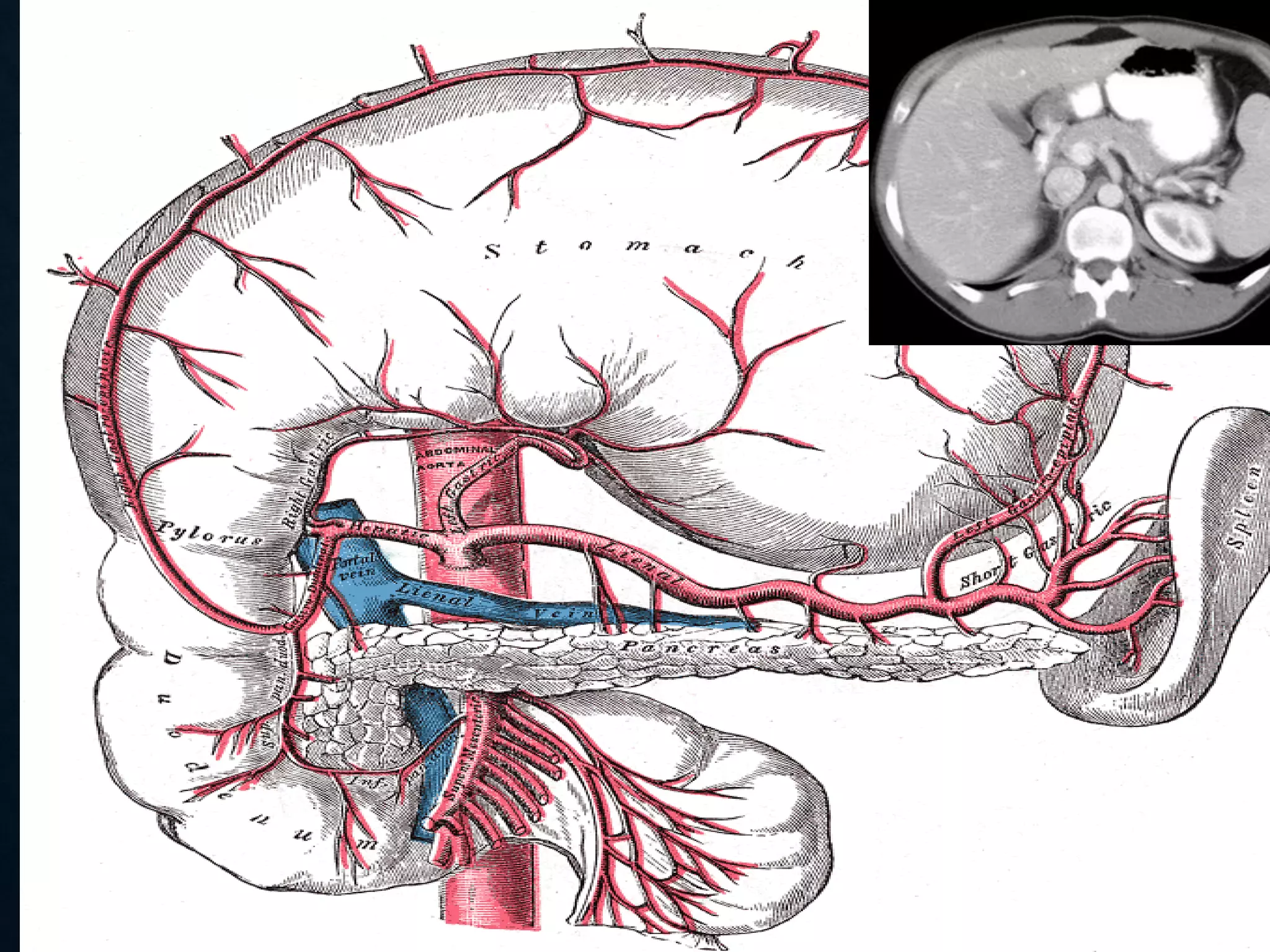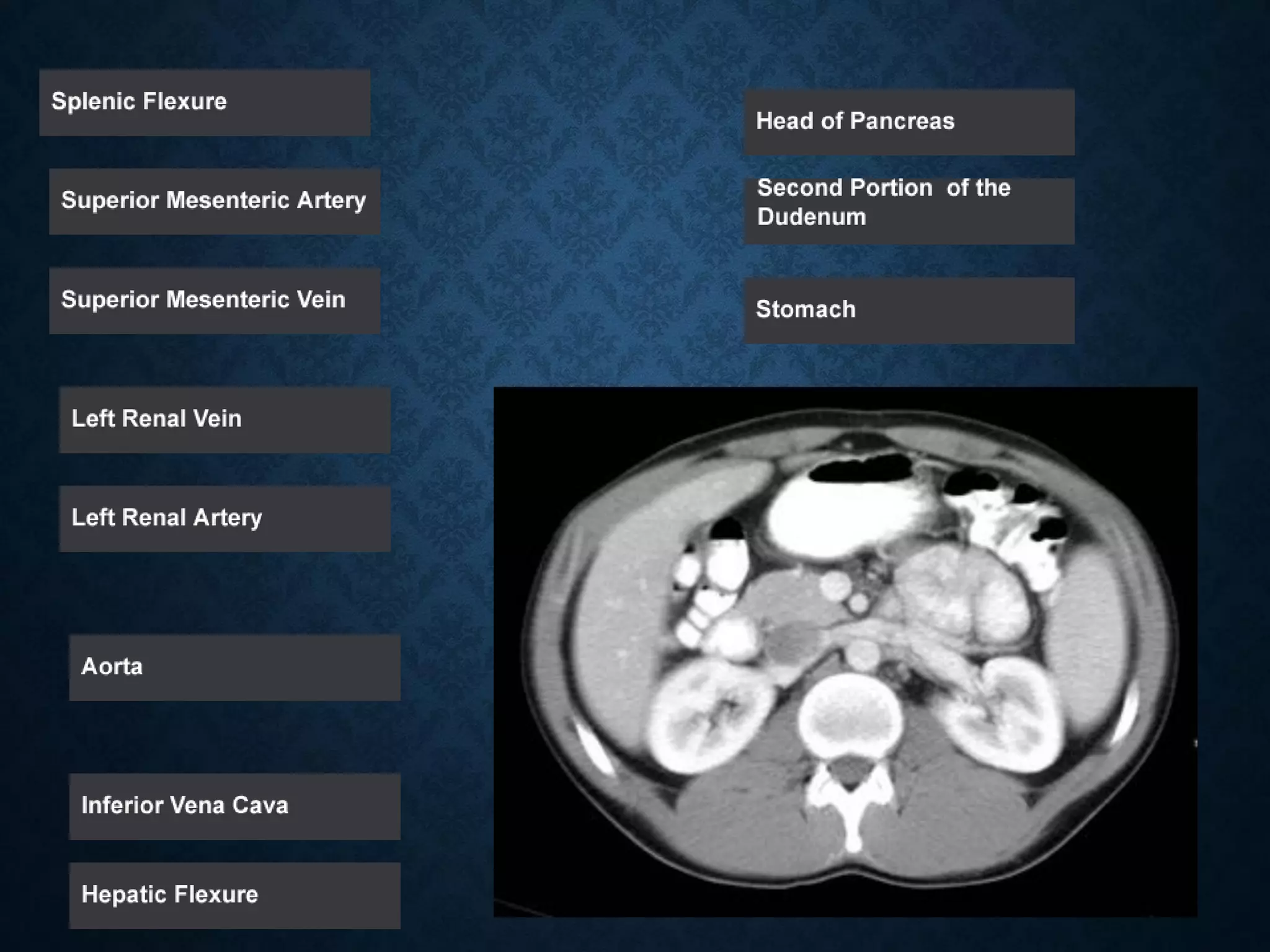This document provides an anatomy tutorial on abdominal CT scans. It identifies and labels key abdominal structures visible on CT images, including the stomach, pancreas, inferior vena cava, celiac artery and its branches, superior mesenteric vein, abdominal aorta, ovaries, and rectum. The tutorial also notes the normal appearance and location of these structures to aid in anatomical identification on abdominal CT scans.