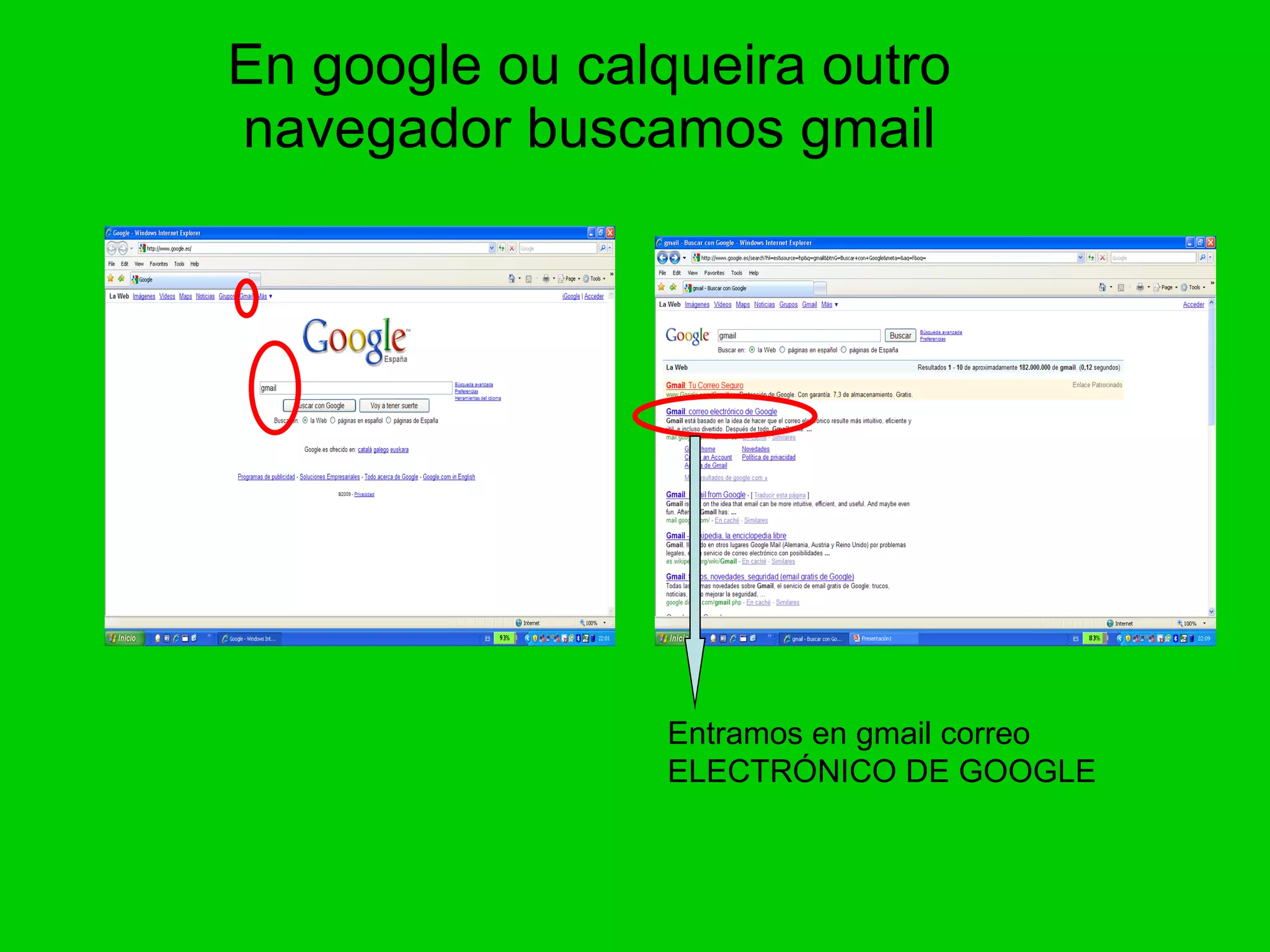 Se xa teñoa miña conta, volvo a gmail e escribo usario e contraseña, despois acceder.. Redactar correo enviar Envía un correo a un compañeiro. Tamén tes messenger. Aproveita o teu correo electrónico