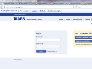 This document provides instructions for educators to connect students and teachers to the IEARN network. It explains that teachers can enroll students by providing them a code, and that once connected, students and teachers can participate in forums and projects. It also provides contact information for any questions about the enrollment or participation process.