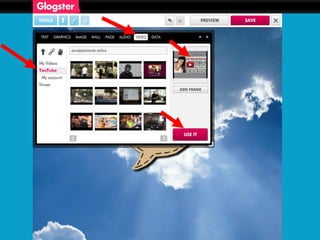 This document contains a series of links to online resources about education topics. These include links to Glogster, which is an online tool for creating multimedia posters; Wordle, a word cloud generator; and YouTube. The links relate to topics around drug prevention, disability, bullying, gender violence, and environmental issues.