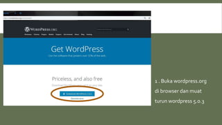 Dokumen ini adalah tutorial untuk menginstal WordPress secara lokal menggunakan Bitnami. Langkah-langkah yang dijelaskan termasuk mengunduh WordPress, menyiapkan basis data di phpMyAdmin, dan menyelesaikan instalasi dengan mengisi informasi yang diperlukan. Setelah proses instalasi selesai, pengguna dapat masuk sebagai admin untuk mengelola situs web mereka.