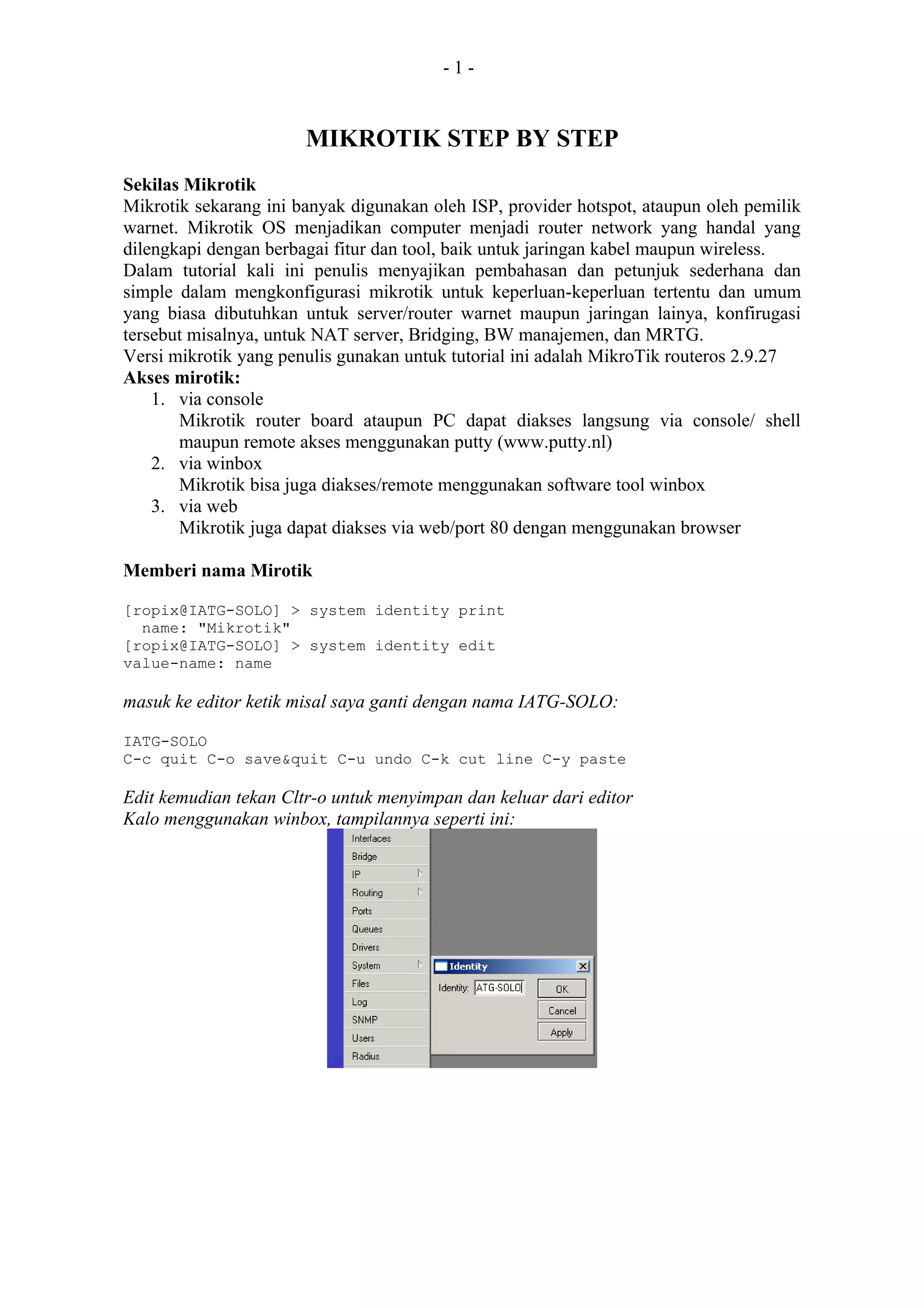 Mikrotik Router OS - Basic Configuration [Part-1] PDF