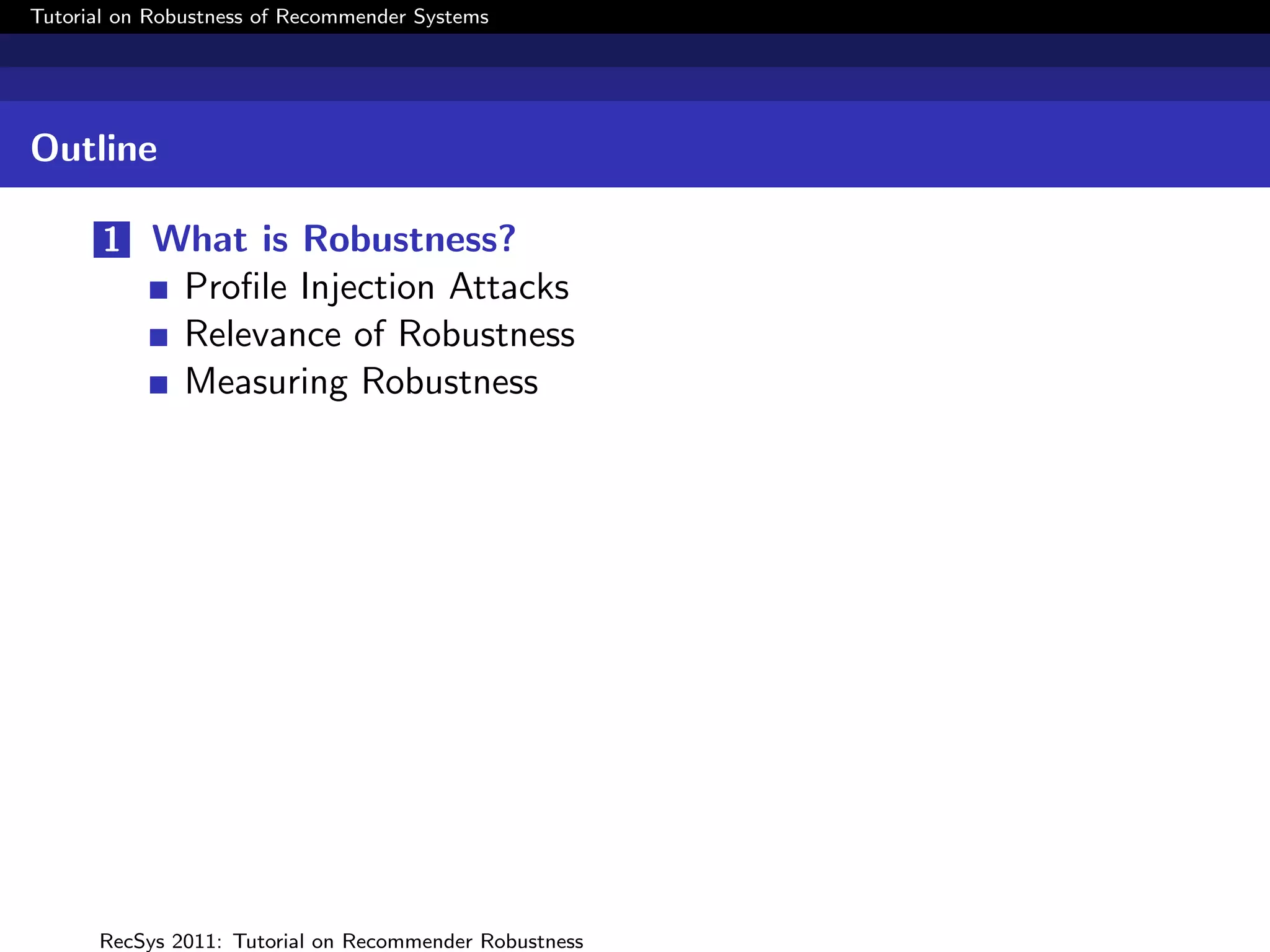 The document presents a tutorial on the robustness of recommender systems, defined as their ability to function under stress, particularly against profile injection attacks, where multiple false identities aim to bias recommendations. It covers various topics including attack strategies, detection methods, and robust algorithm design, emphasizing the importance of understanding and defending against such vulnerabilities to preserve the integrity of recommendations. The tutorial also highlights the implications of these attacks on user experience and system trustworthiness.