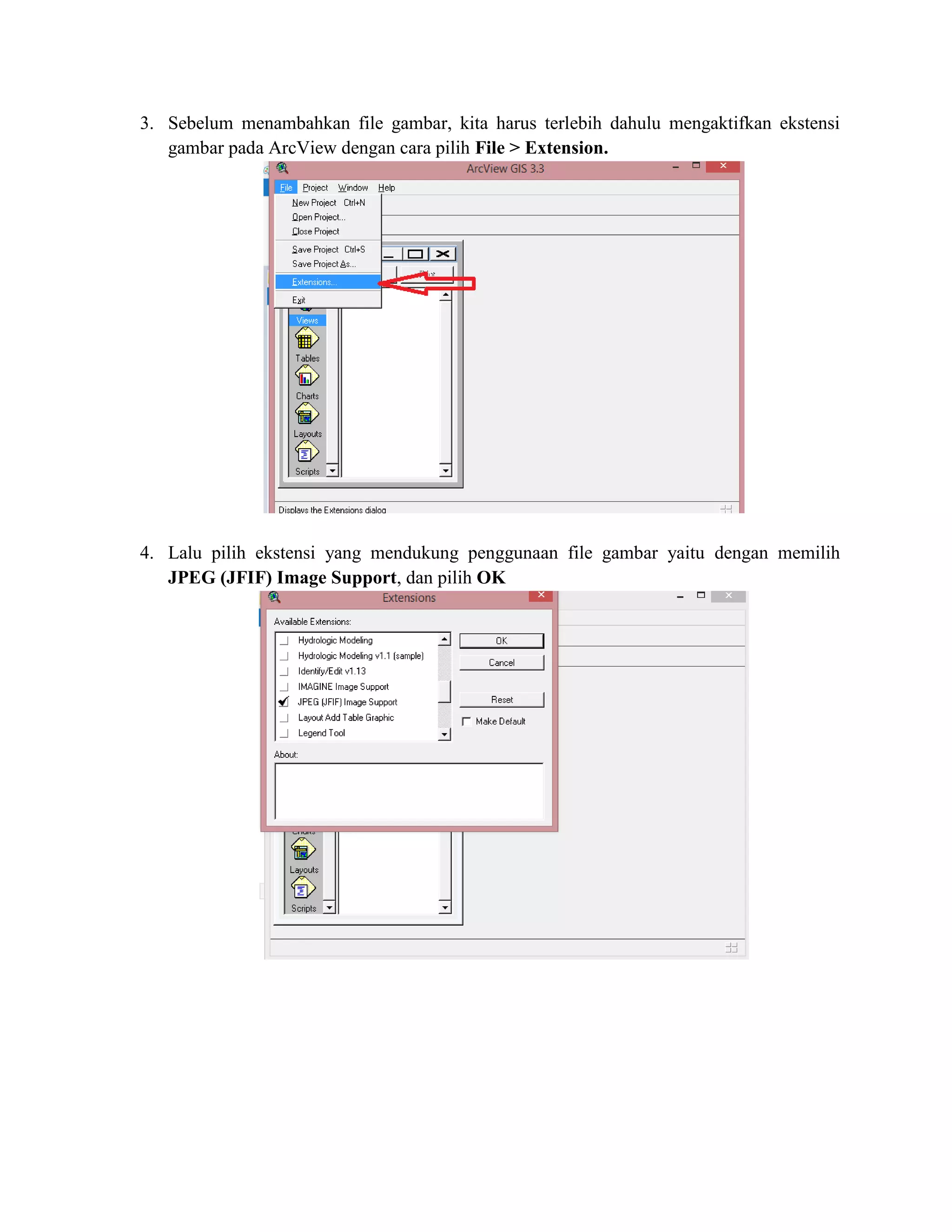 Dokumen ini adalah panduan praktikum menggunakan aplikasi ArcView untuk memproses peta kota Lembang. Langkah-langkah mencakup aktivasi ekstensi gambar, penambahan tema, dan pembuatan simbol titik, garis, serta area pada peta. Selain itu, terdapat instruksi untuk menyimpan setiap perubahan yang dilakukan dalam folder database spasial.