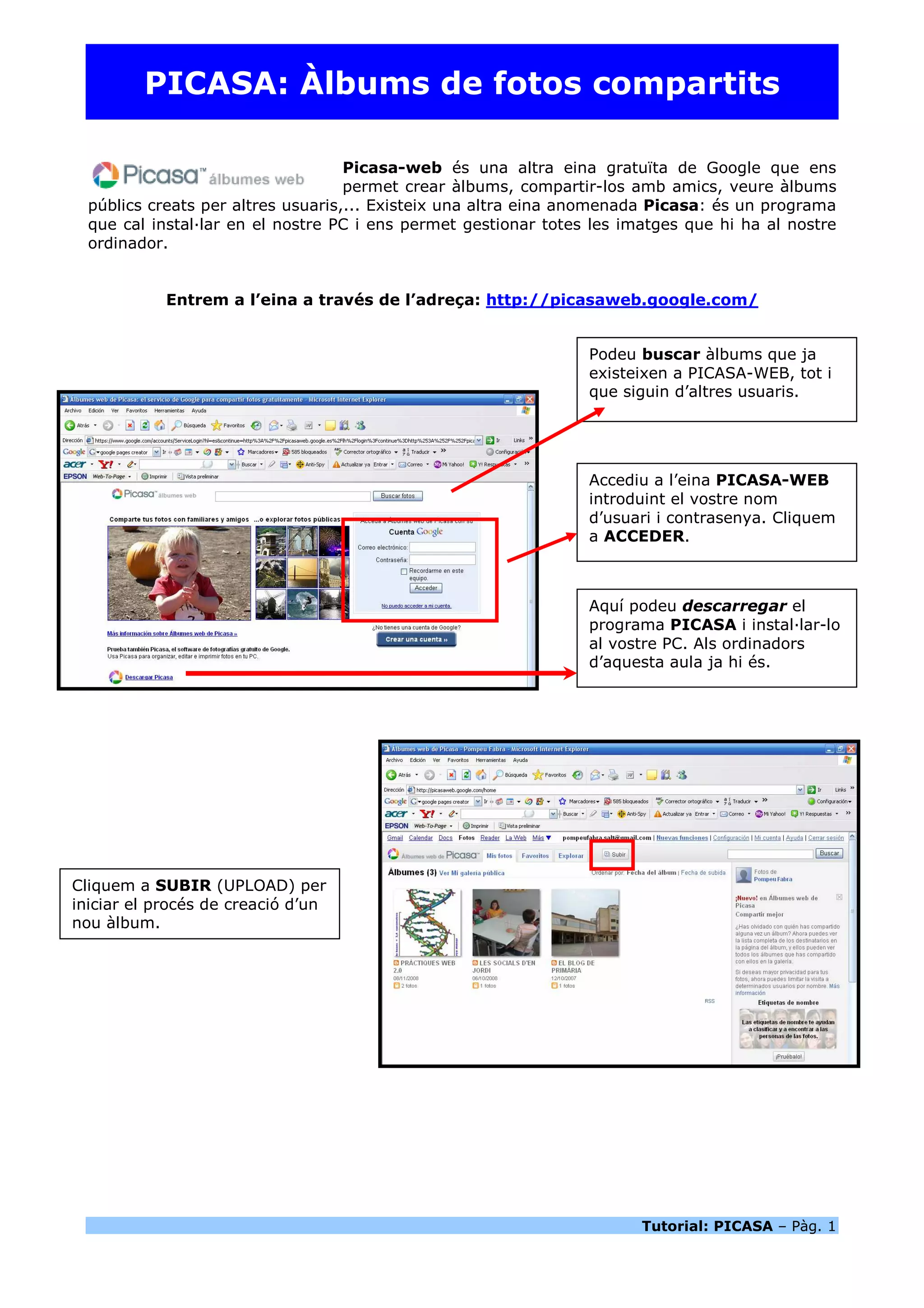 públics creats per altres usuaris,... Existeix una altra eina anomenada Picasa: és un programa