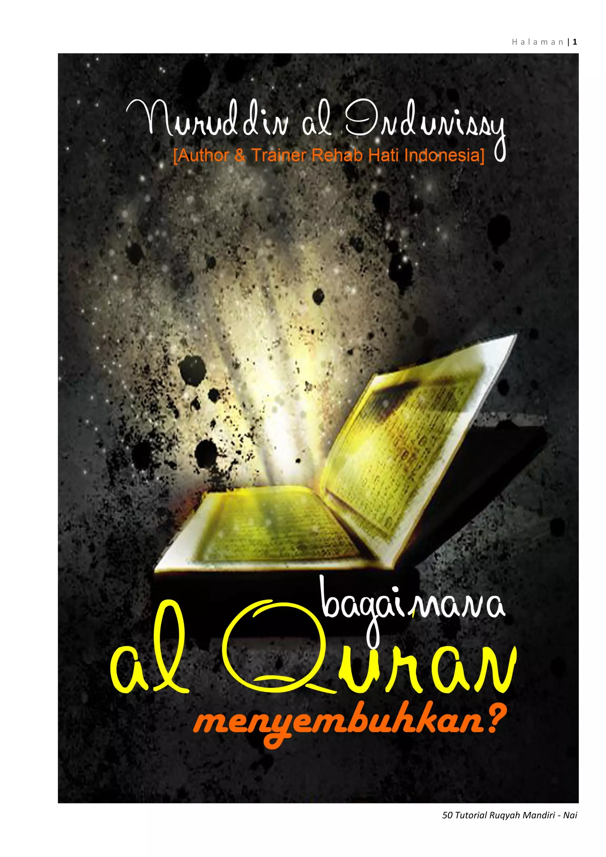 Dokumen tersebut membahas tentang ruqyah syar'iyyah sebagai cara pengobatan alternatif dengan menggunakan Al Quran, doa-doa Nabi, dan doa pribadi. Dibahas pula definisi ruqyah syar'iyyah, dalil-dalil yang mendukungnya dari Al Quran dan hadits, serta karakteristik penyakit yang dapat diobati dengan ruqyah. Tulisan ini mengajak pembaca untuk melakukan ruqyah mandiri dengan
