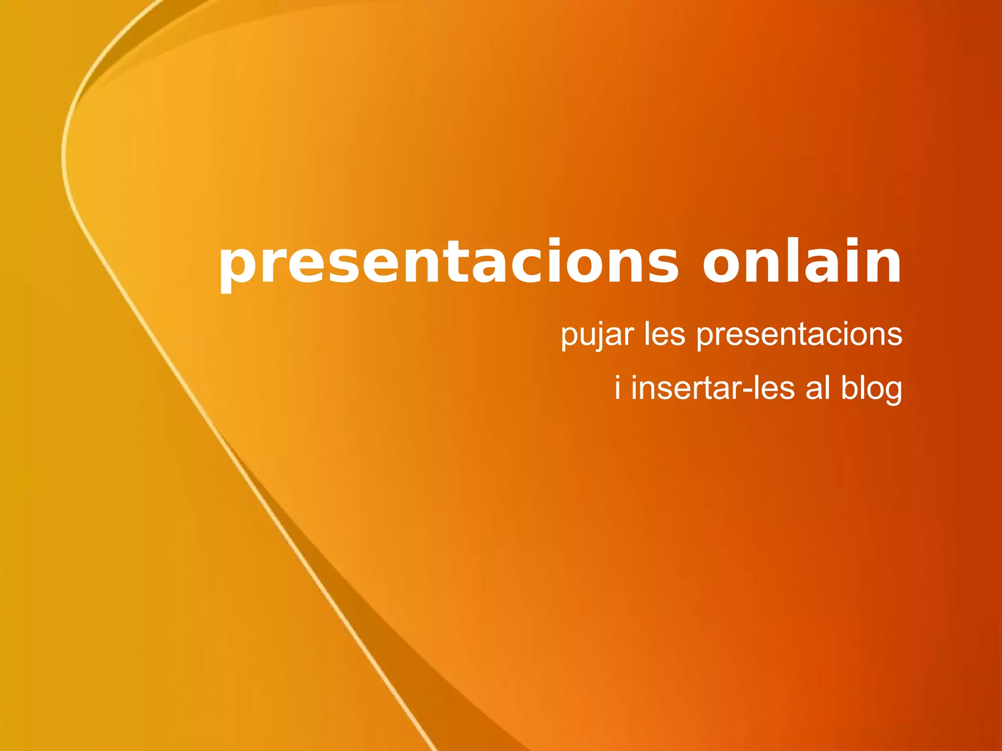 presentacions onlain ambl’SLIDE Una volta escollida la plantilla i baixada a l’escriptori, l’obrirem i li posarem nom a la presentació (pàgina inicial). Tot seguit, emplenem la segona diapositiva amb el text que hi vulguem posar. Després, a la tercera podem posar una imatge (copiant-la des d’algun lloc web) i afegir-li un quadre de text explicant alguna coseta. A la quarta podem inserir una captura de pantalla des de l’ordinador nostre o també des d’internet I així, tot allò que se’ns ocórrega …