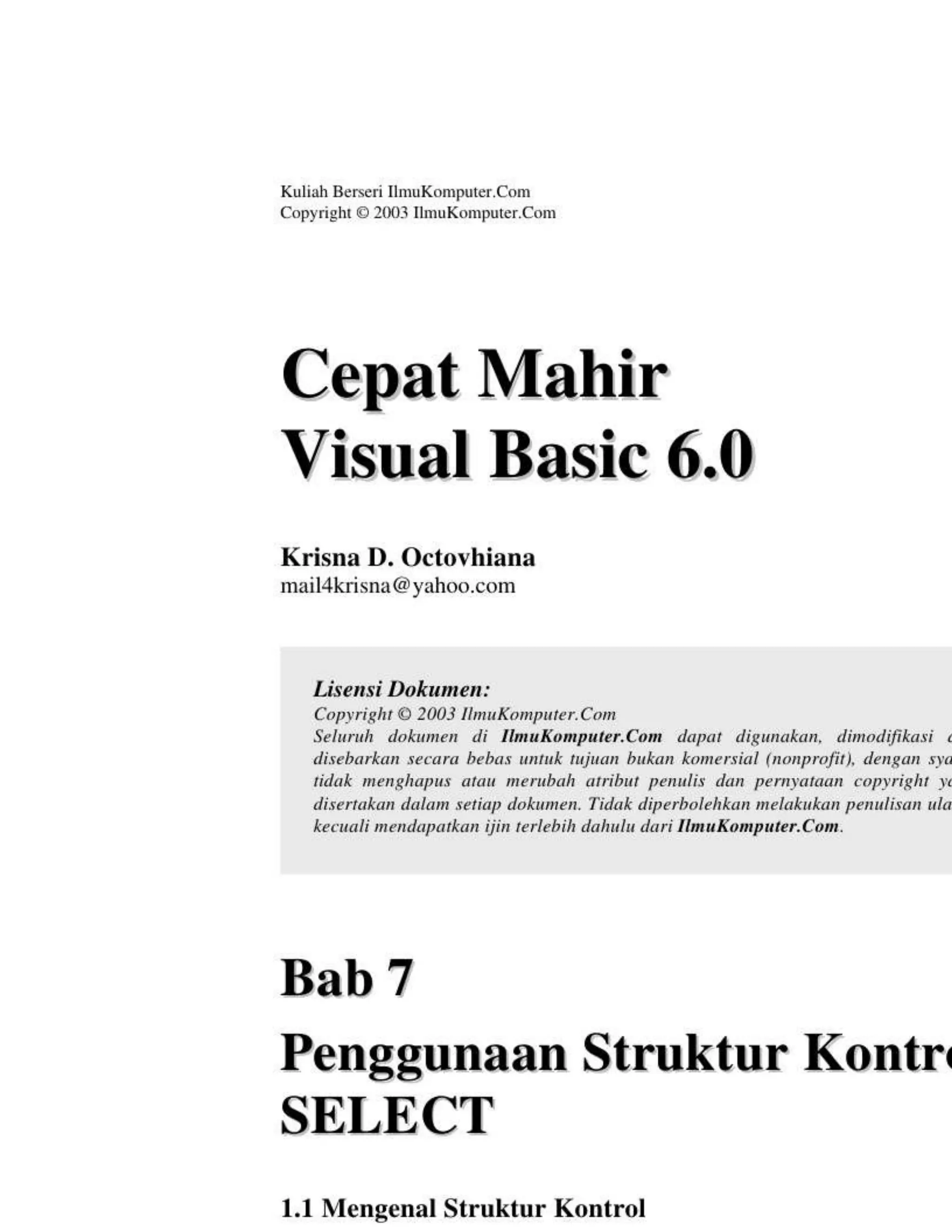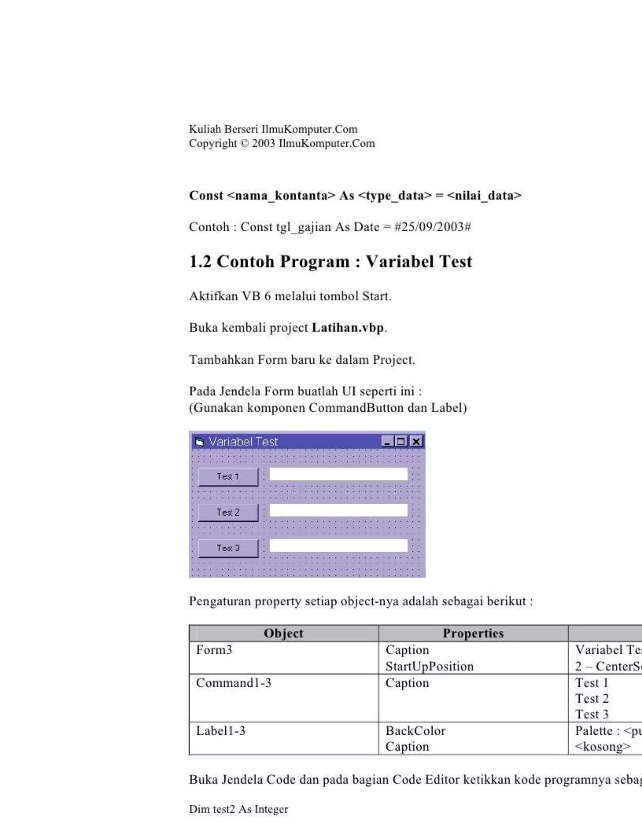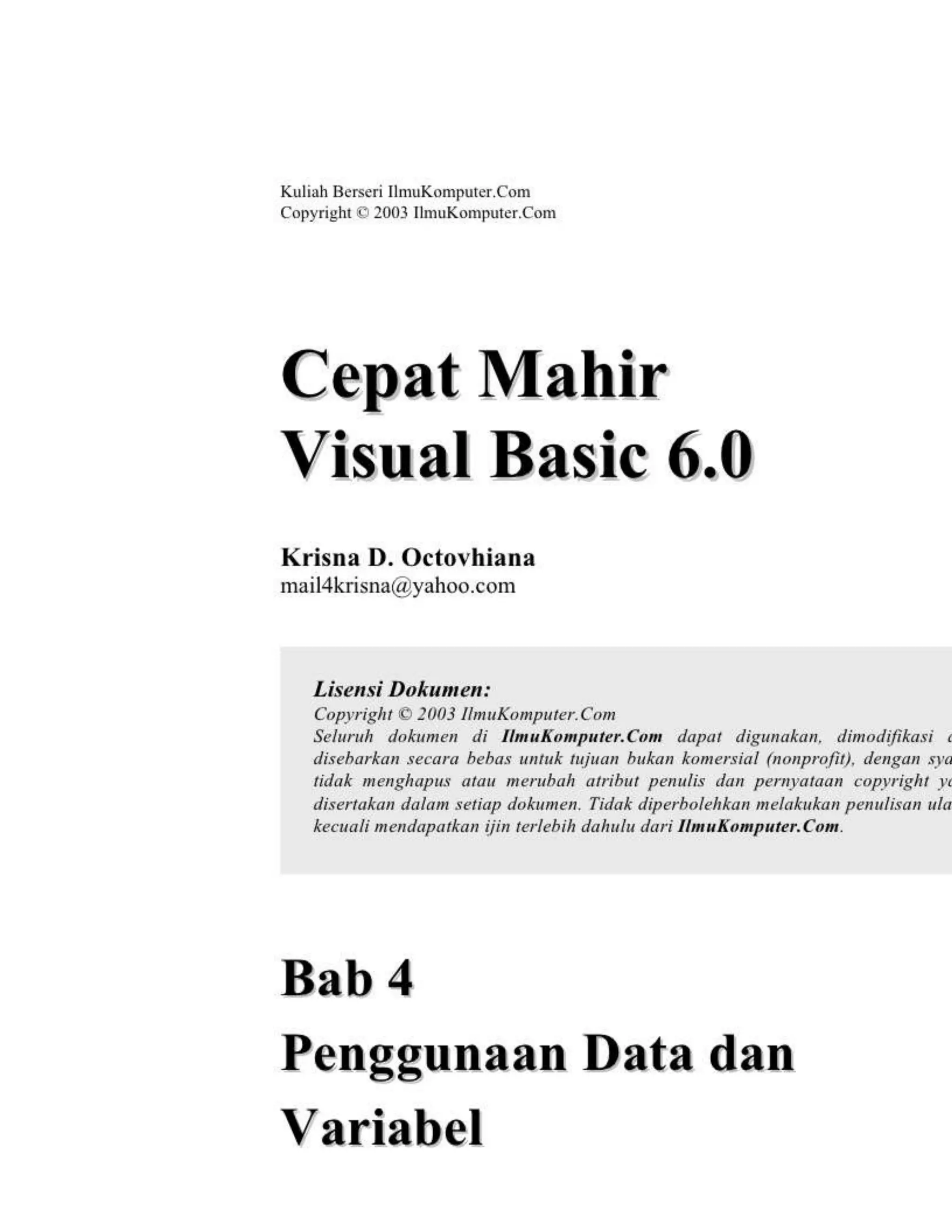 3. Tutorial ini mencakup materi dasar visual basic 6.0 sepert