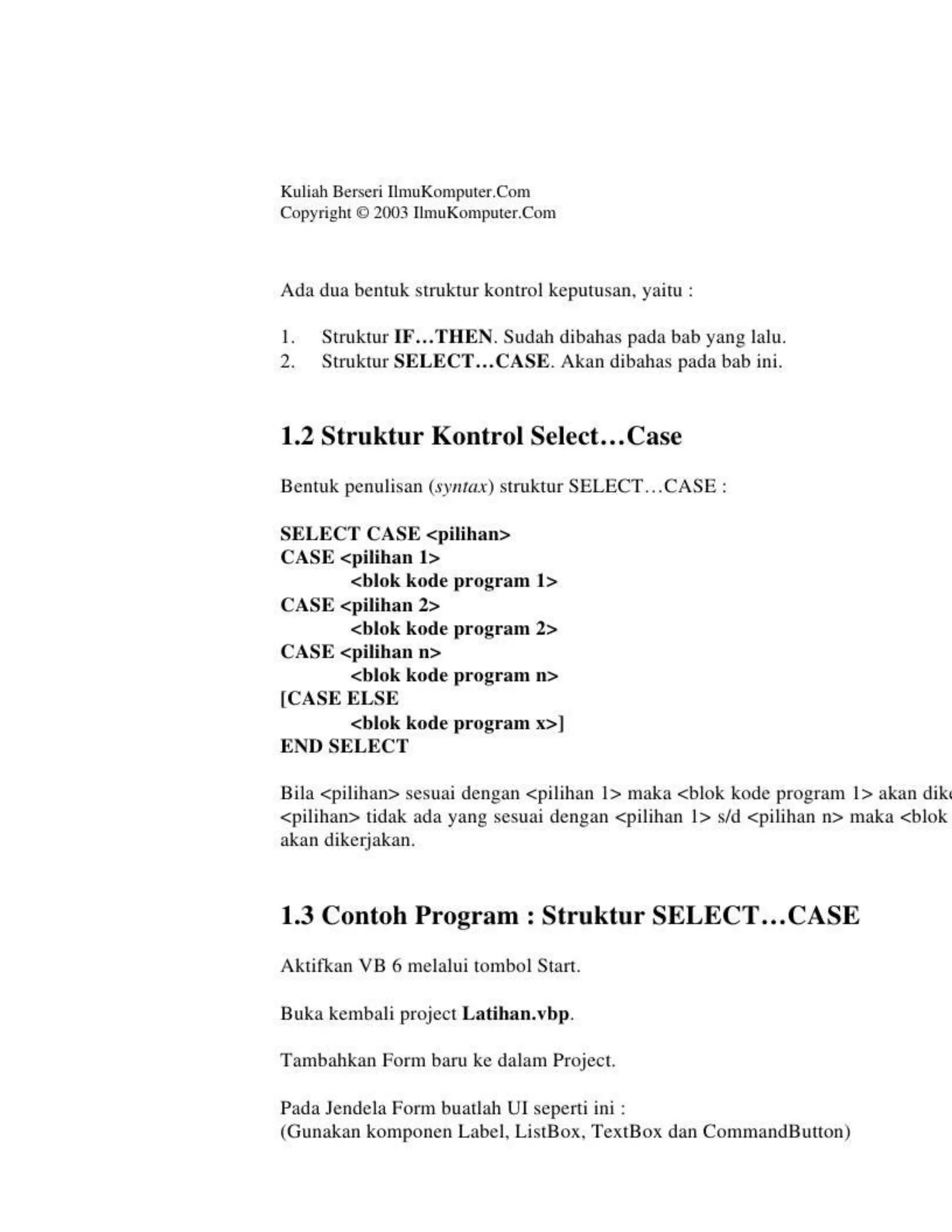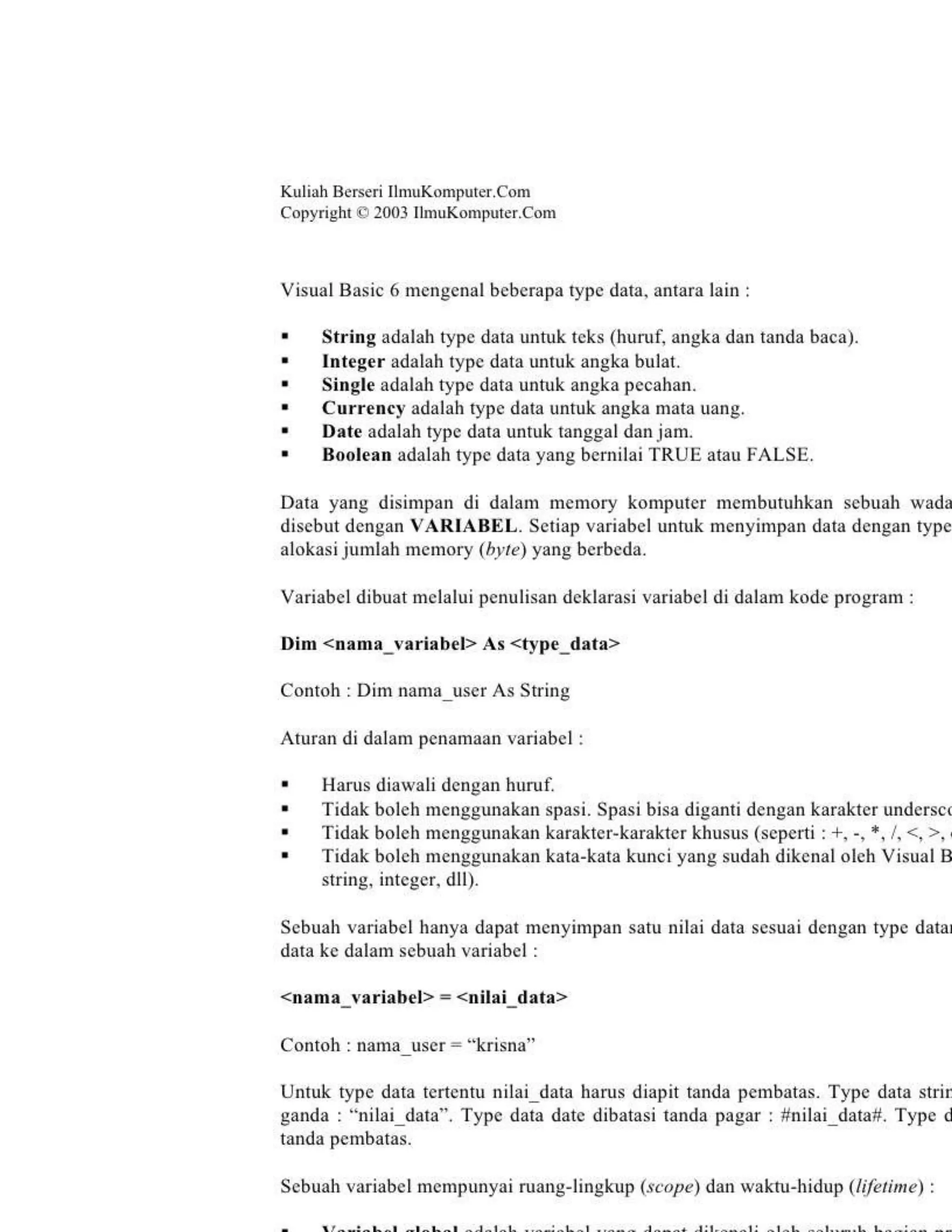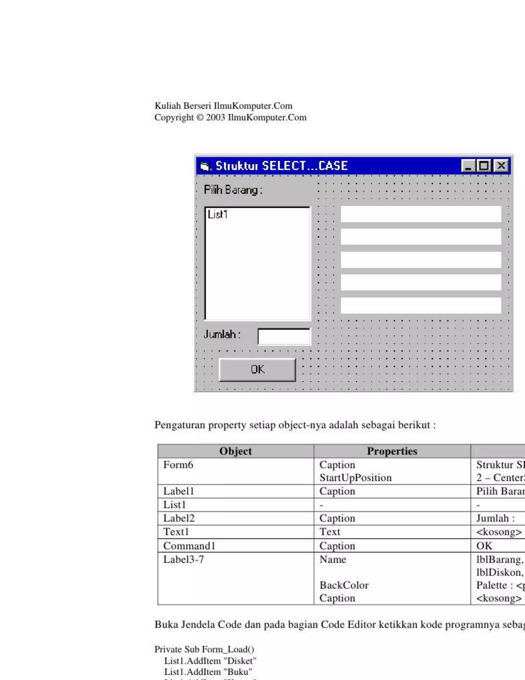 3. Tutorial ini mencakup materi dasar visual basic 6.0 sepert