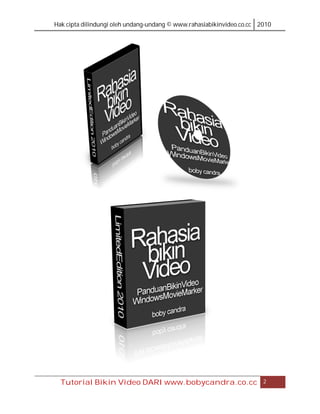 Dokumen tersebut merupakan tutorial singkat tentang cara membuat video dengan Windows Movie Marker (WMM). Tutorial ini membahas tentang pengimporan file video, pengaturan storyboard, pemberian efek transisi, penambahan musik, dan penyimpanan hasil akhir video.