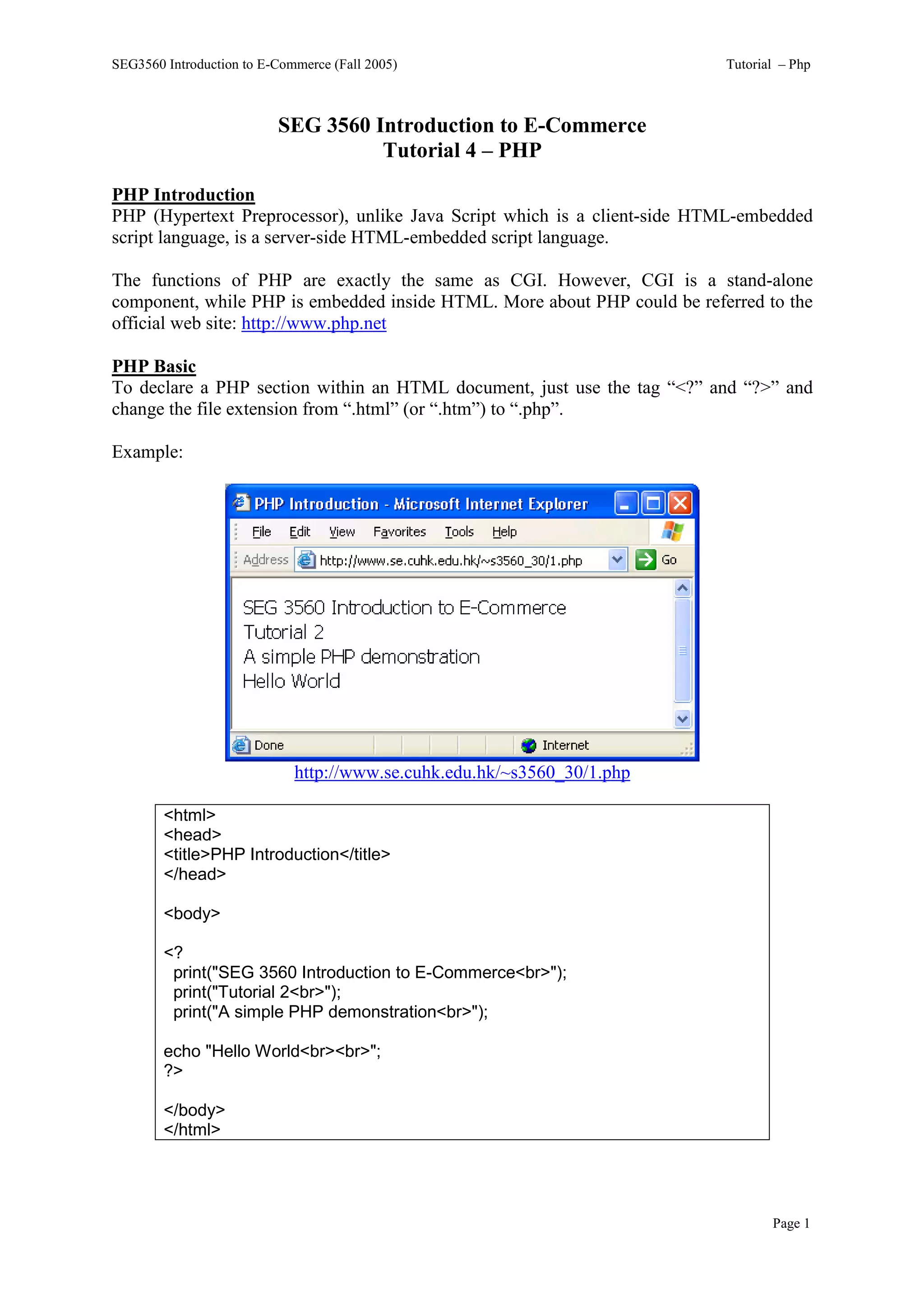 This document provides an introduction and overview of PHP: