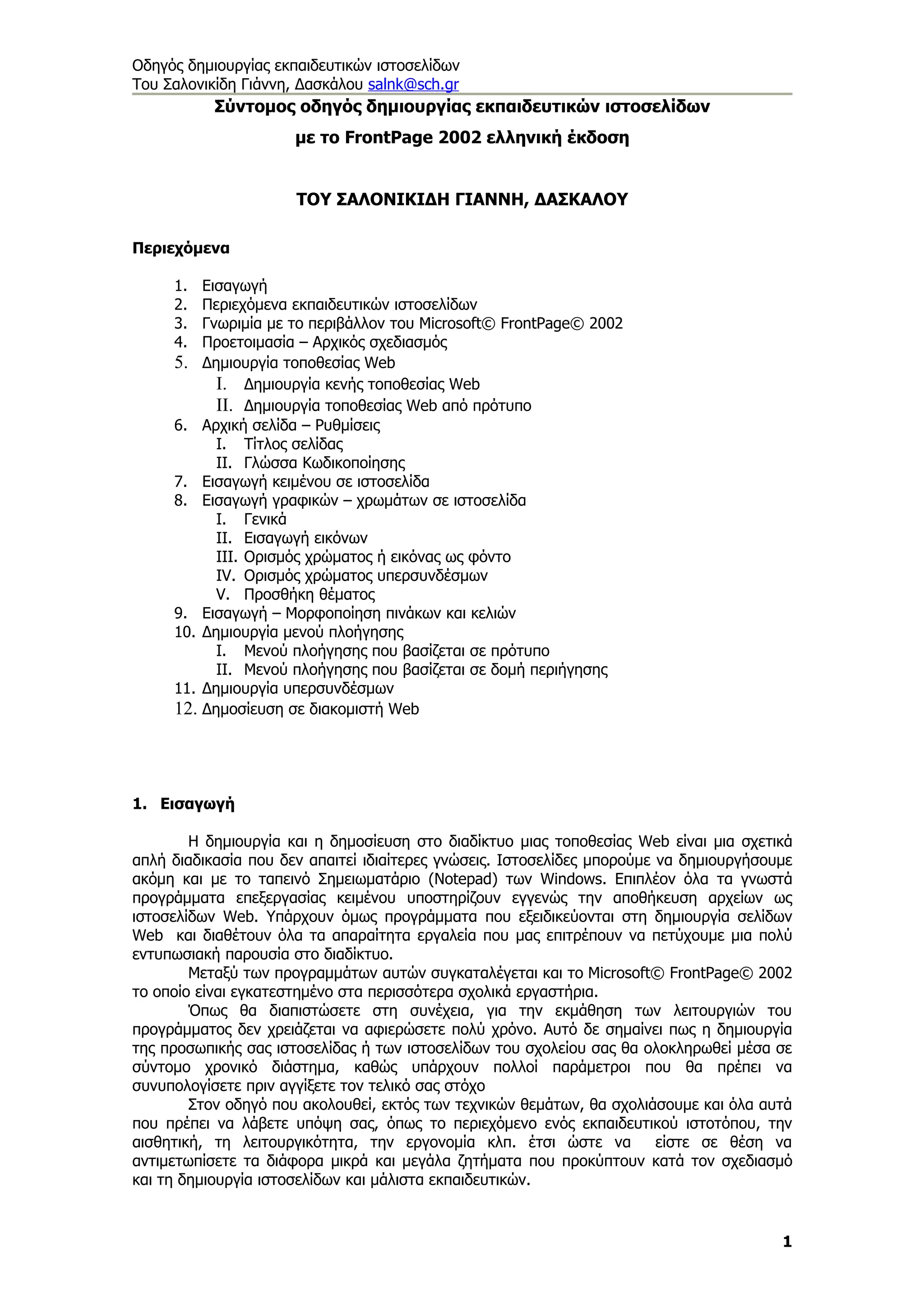 Του Σαλονικίδη Γιάννη, Δασκάλου salnk@sch.gr
