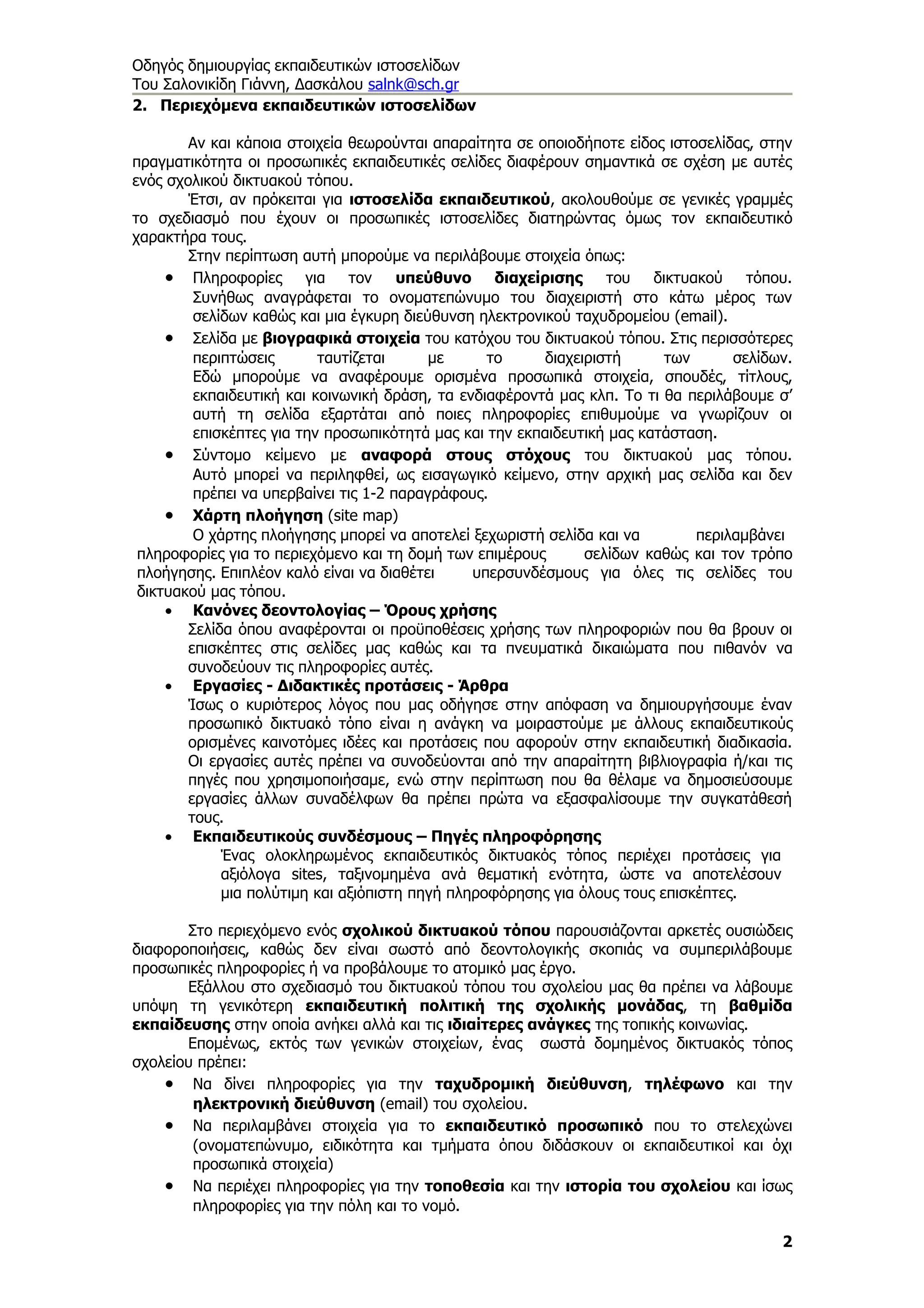 2. Περιεχόμενα εκπαιδευτικών ιστοσελίδων