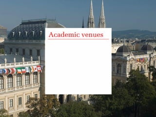 Vienna is a premier destination for international meetings and events, boasting easy access, outstanding infrastructure, and a high quality of living. The city features numerous convention centers, a substantial hotel capacity, and extensive public transport options. Recognized for its green initiatives, Vienna combines cultural richness with modern amenities, making it an attractive choice for various gatherings.