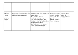 4) A T-Mobile dance ad where 350 people danced simultaneously at a train station to promote sharing life experiences on the mobile network.