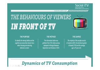 This document summarizes research into developing a new TV program discovery application called TV Discovery & Enjoy (TvDE). TvDE aims to help users more easily find TV programs to watch by considering their preferences and context. It integrates live, recorded, and on-demand content sources. An evaluation involved users testing a prototype. They found the interface easy to use and recommendations generally suitable. Most saw value in TvDE for the home, especially heavier TV viewers. The research concludes TvDE shows potential as an alternative to electronic program guides by better mapping users' cognitive selection processes.
