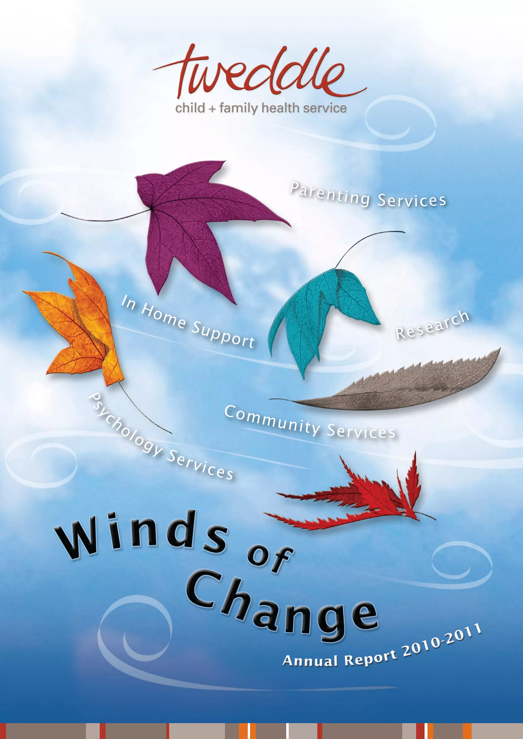 Tweddle provides parenting support services to families in Melbourne's northwest. It offers programs like residential parenting courses, home visits, counseling, and community activities. Tweddle partners with other organizations and all levels of government to deliver evidence-based services. In 2010-2011, Tweddle expanded mental health programs, partnered with new groups, transitioned some services, and became re-accredited. Going forward, Tweddle aims to complete pilot programs and research initiatives to continually improve support for families.