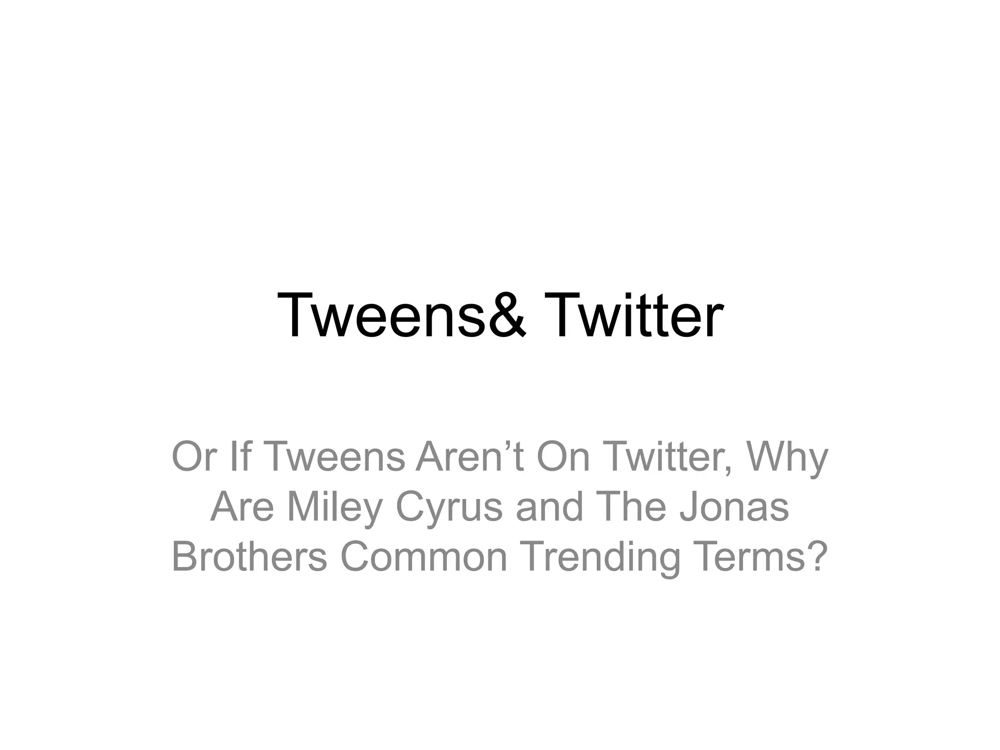 Tweens, especially tween girls, make up a large portion of followers for Disney Channel stars like Miley Cyrus and the Jonas Brothers on Twitter. While tweens rarely tweet themselves, many follow celebrities and use Twitter to keep up with pop culture events. Several popular quiz and poll websites have emerged that are focused on tween pop stars, and tweens will participate in these quizzes and polls by tweeting their answers. This drives traffic to the sites and the stars' profiles, and helps make tween celebrities frequent topics in Twitter's trending terms. However, this trend is likely to decline as tweens get busy with the school year.