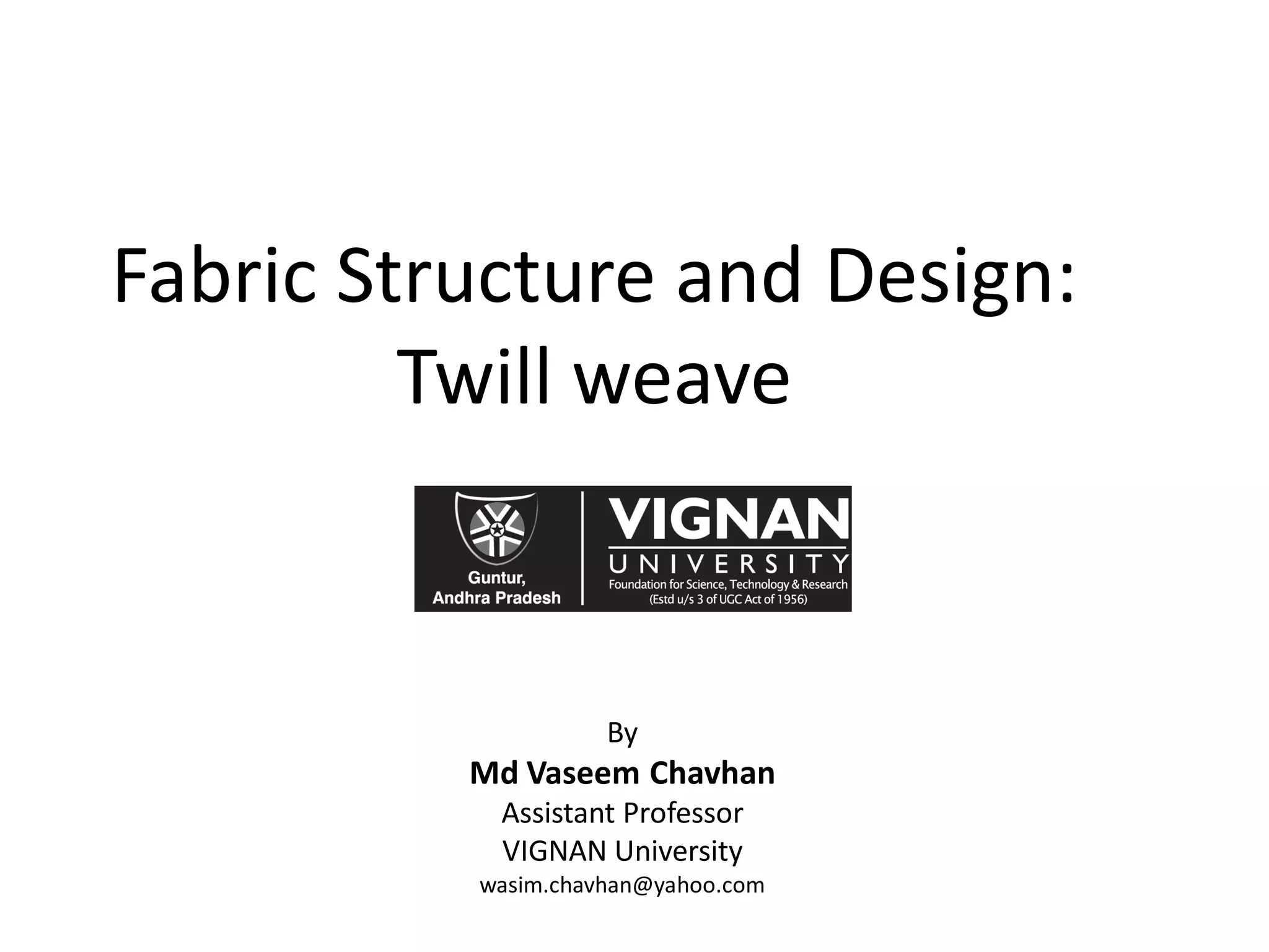 (2) Zig zag and wavy twills that create non-straight diagonal patterns through periodic reversals of the twill direction.
