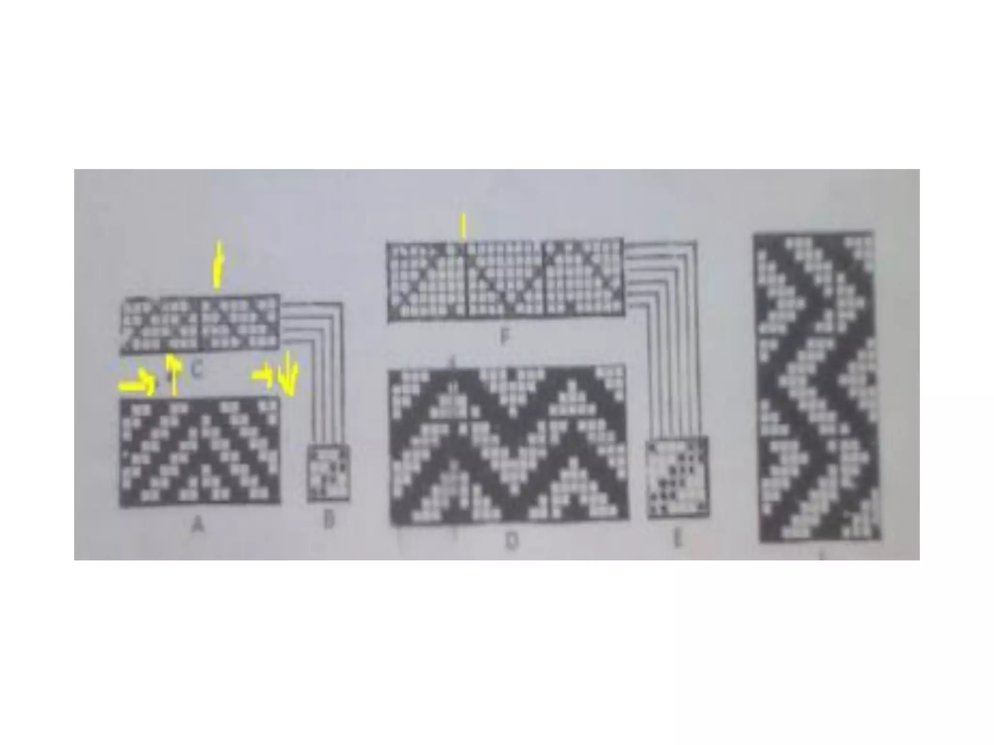 (3) Broken and rearranged twills like herringbone that break up the twill lines through offsets, cuts, or changes in the float sequence.