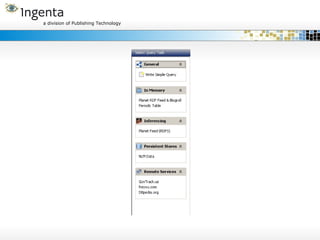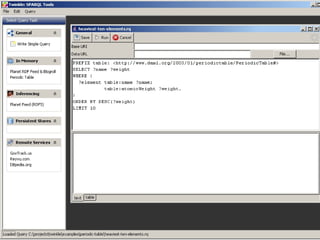 Twinkle is a GUI tool for writing and running SPARQL queries against local files, remote files, Jena databases, and SPARQL endpoints. It allows inferencing using RDFS, OWL, and Jena rules. Configuration is done declaratively using the Jena assembler API. Twinkle utilizes the ARQ SPARQL query engine and provides additional functions and property libraries. Future plans include improved documentation, access control, caching, and syntax highlighting.