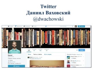 Даниил Ваховский является PR директором одного из крупнейших медиа-холдингов Украины с 2011 года. Он рассматривает аналитический подход как свою сильную сторону и активно использует Twitter для общения с подписчиками, но не применяет многие рекомендуемые инструменты и методы продвижения. В свободное время увлекается музыкой, литературой и фехтованием.