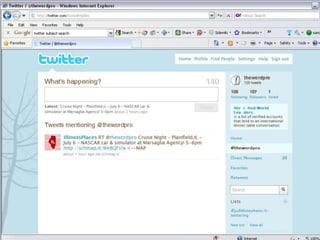 Twitter is a social media platform that allows users to post short messages called tweets. Key aspects of Twitter include: