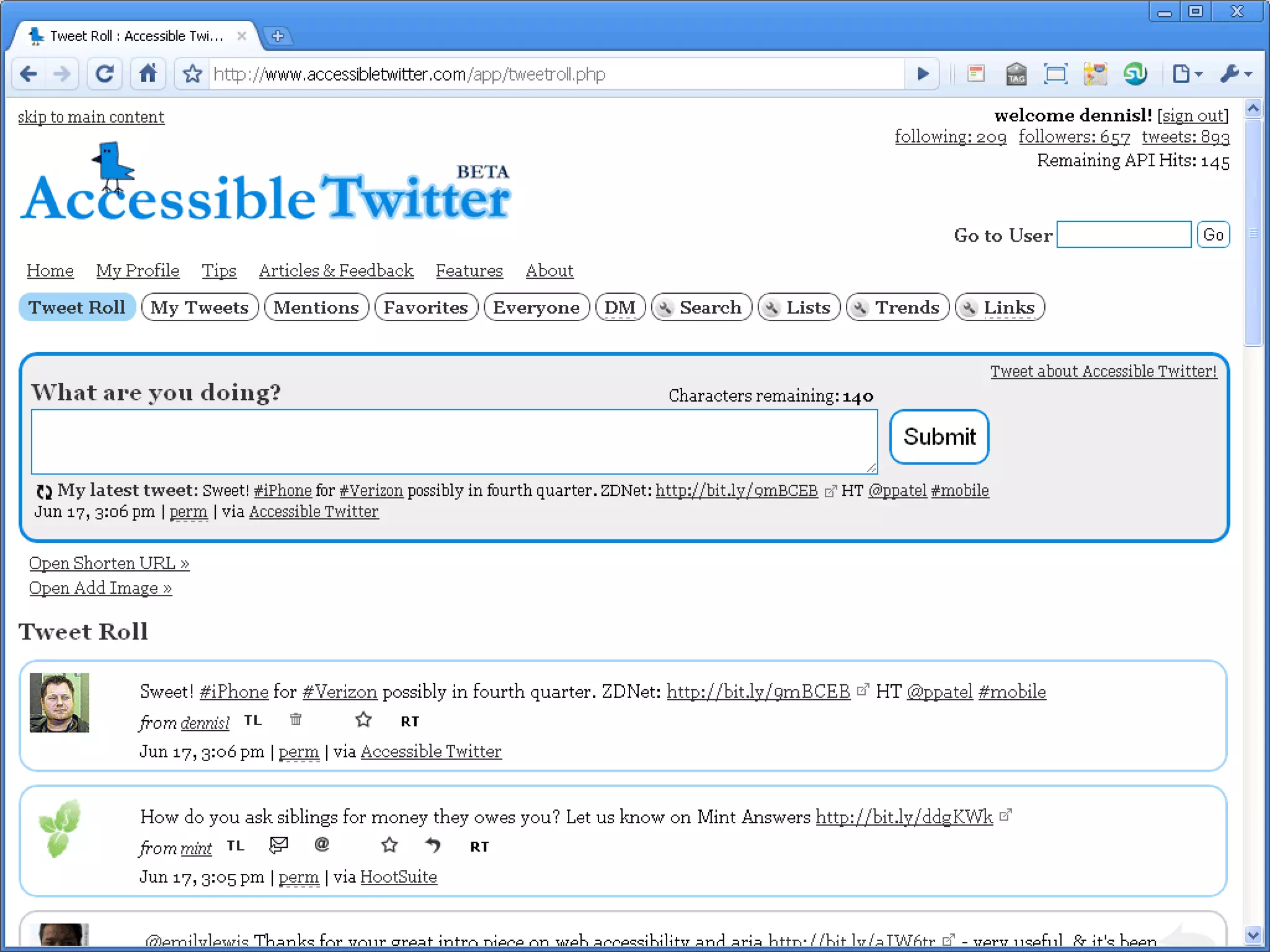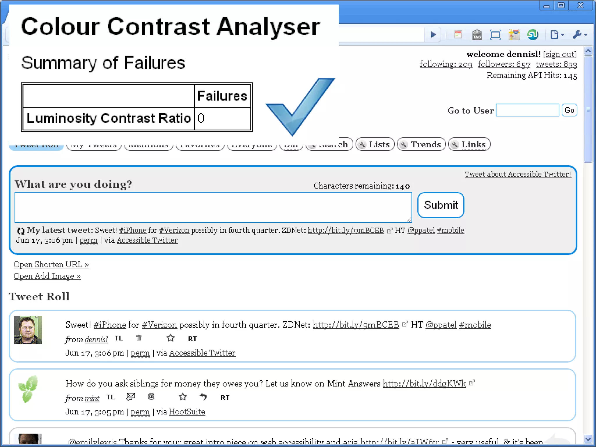 Dennis Lembrée presented on the accessibility issues related to Twitter at the 2010 Assistive Technology Conference. The presentation highlighted various shortcomings of Twitter's accessibility features and introduced accessible Twitter clients that enhance usability for individuals with disabilities. Additionally, the talk discussed the benefits of web accessibility and provided guidelines for crafting accessible tweets.