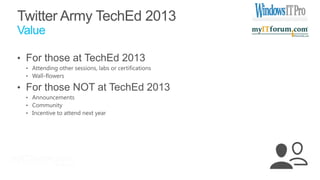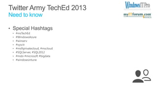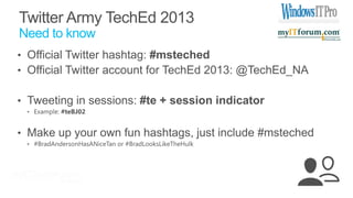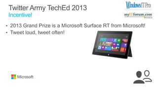 This document provides instructions for attendees at a tech conference to sign in, get a badge with their Twitter handle, and follow conference hashtags and accounts. It encourages participants to be active on Twitter for a chance to win prizes that will be announced and awarded at the conference. The summary highlights the key activities participants are being asked to engage in for a contest.