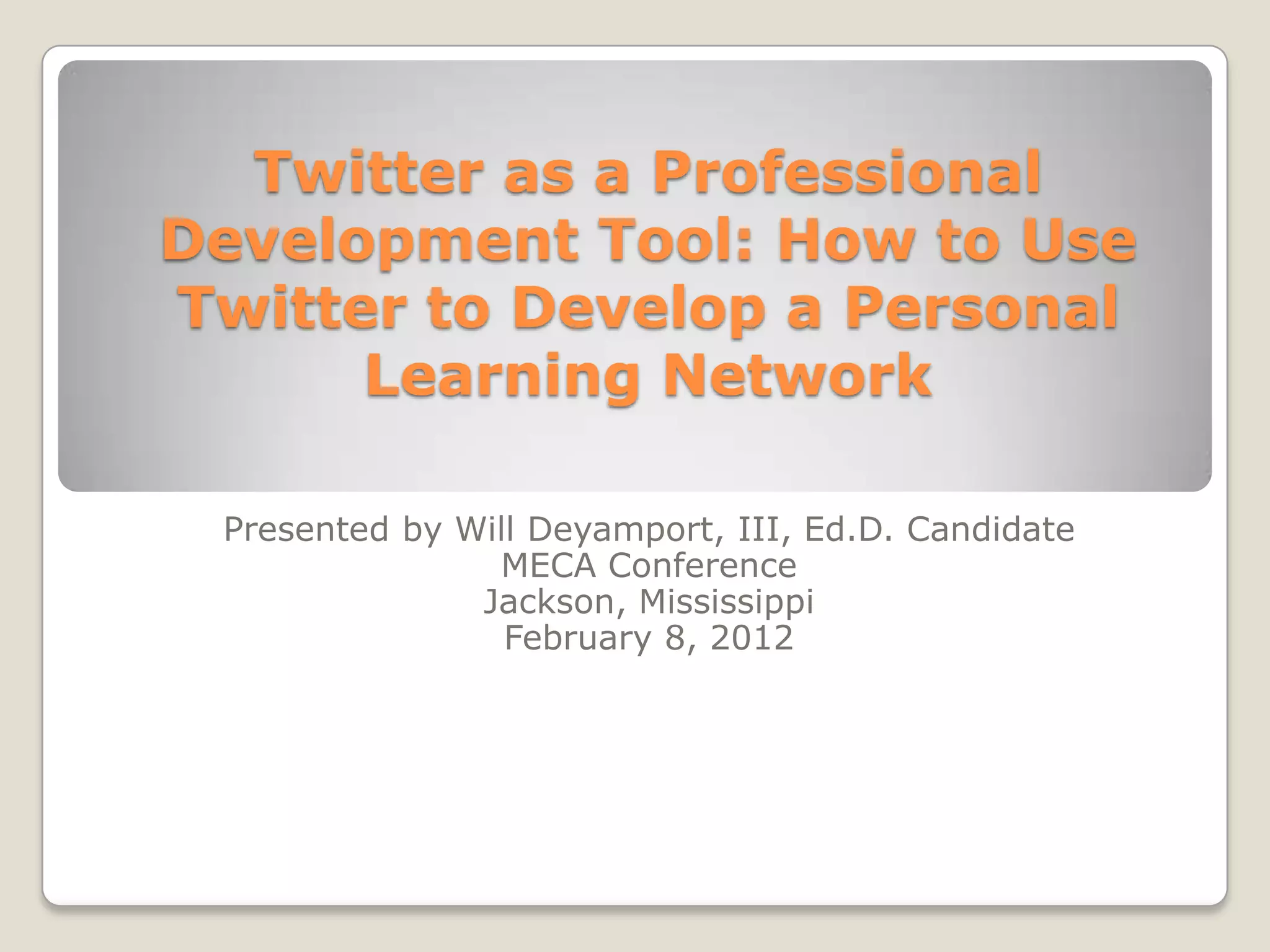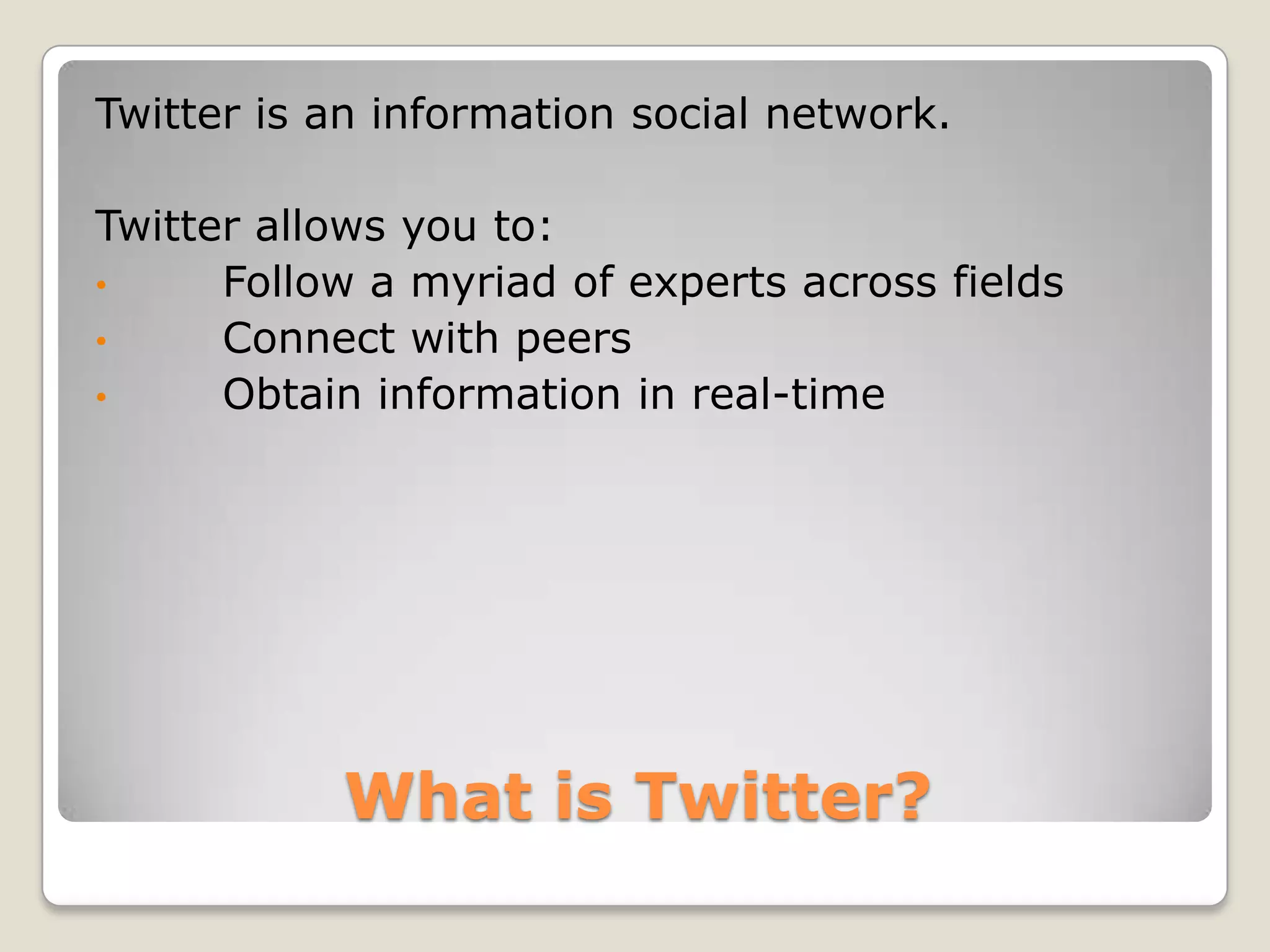 The document discusses how educators can use Twitter as a professional development tool. It explains that Twitter allows users to follow experts, connect with peers, and obtain real-time information. The document then provides guidance on setting up a Twitter account, finding people to follow, participating in conversations using hashtags, and lists some resources for getting started with Twitter.