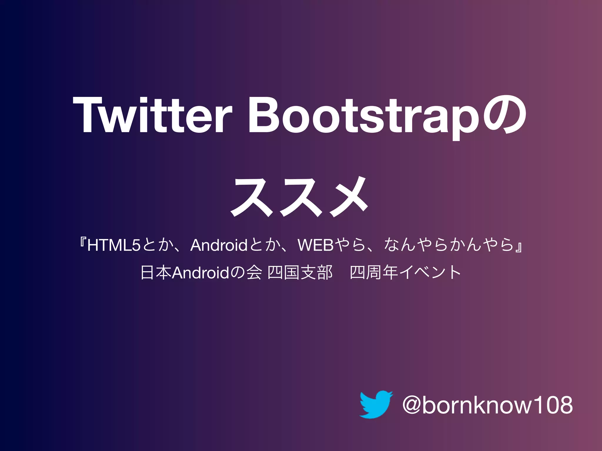 Twitter Bootstrapの ススメ 『HTML5とか、Androidとか、WEBやら、なんやらかんやら』 日本Androidの会 四国支部 四周年イベント @bornknow108