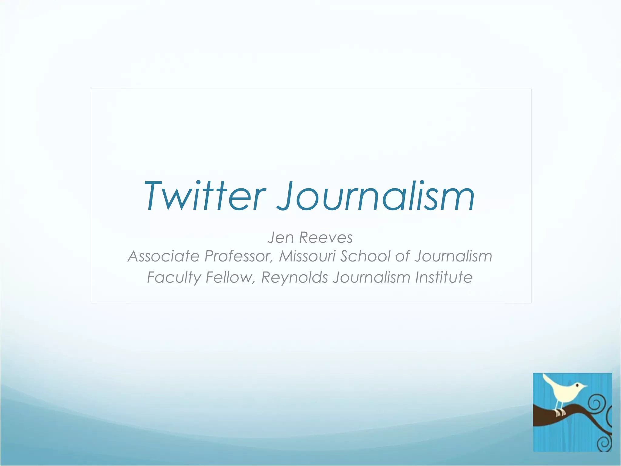 The document discusses the role of Twitter in journalism, highlighting its features like short postings, audience interaction, and quick news updates. It outlines various uses in newsrooms, including engaging with audiences, confirming information, and the evolution of Twitter as a media platform through retweeting and sharing insider perspectives. It also mentions mistakes made by newsrooms in adopting Twitter and the impact of real-time reporting during events like the Mumbai attacks.