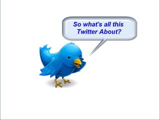 3) Examples are given of local businesses that have found success on Twitter, and tips are provided on setting up an account, finding people to follow, Twitter jargon, and tools to use.