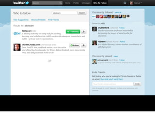 The document provides a comprehensive guide on using Twitter as a tool for education, detailing its features and engaging activities for users to enhance their learning experience. It emphasizes creating personal accounts, participating in discussions, and utilizing Twitter for gathering feedback and building a personal learning network. Various suggested activities encourage users to explore Twitter's capabilities and integrate them into classroom settings effectively.