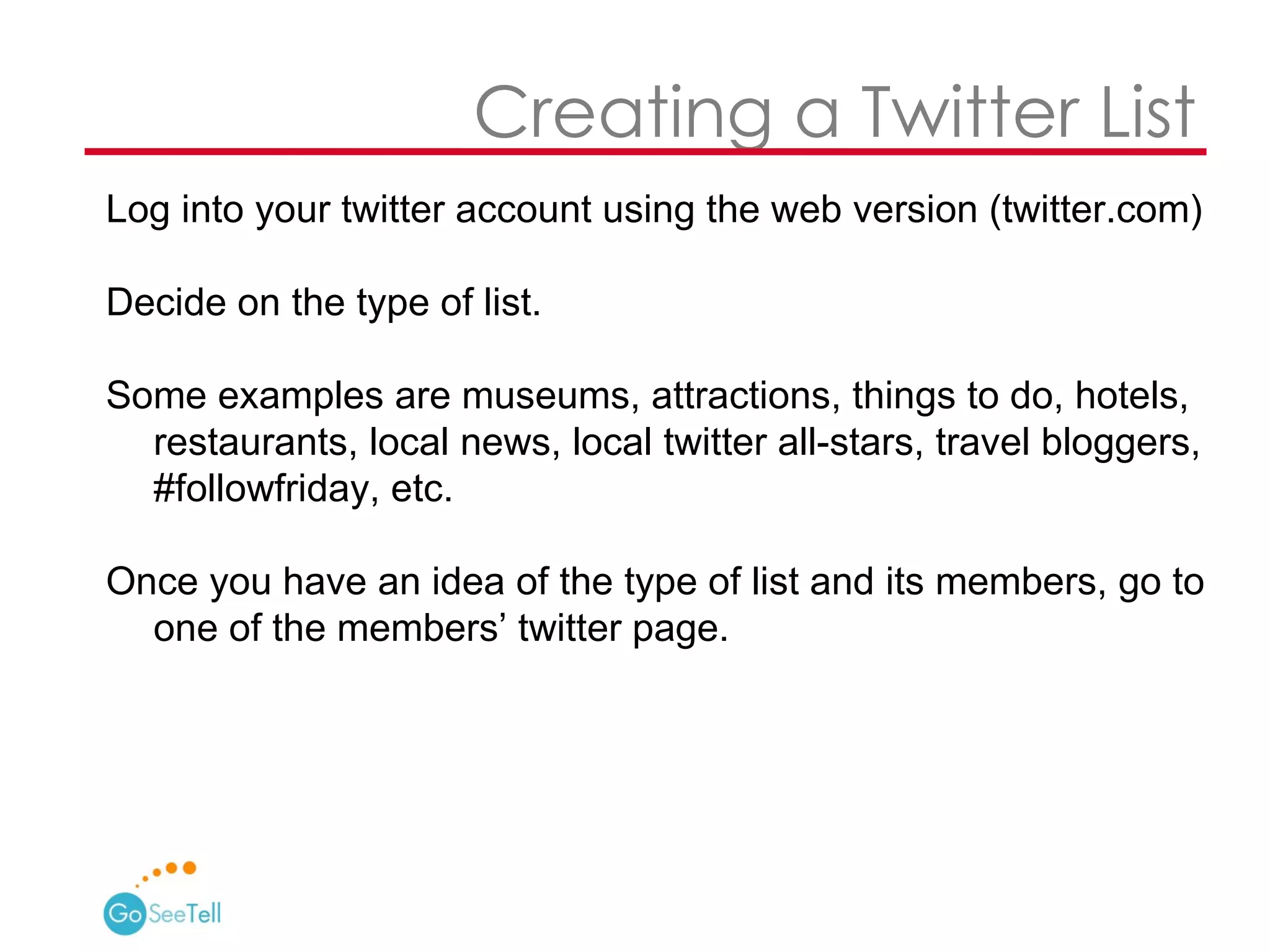 1) Create lists by deciding on a topic and adding relevant Twitter members directly from their profile pages. Lists can be public or private.