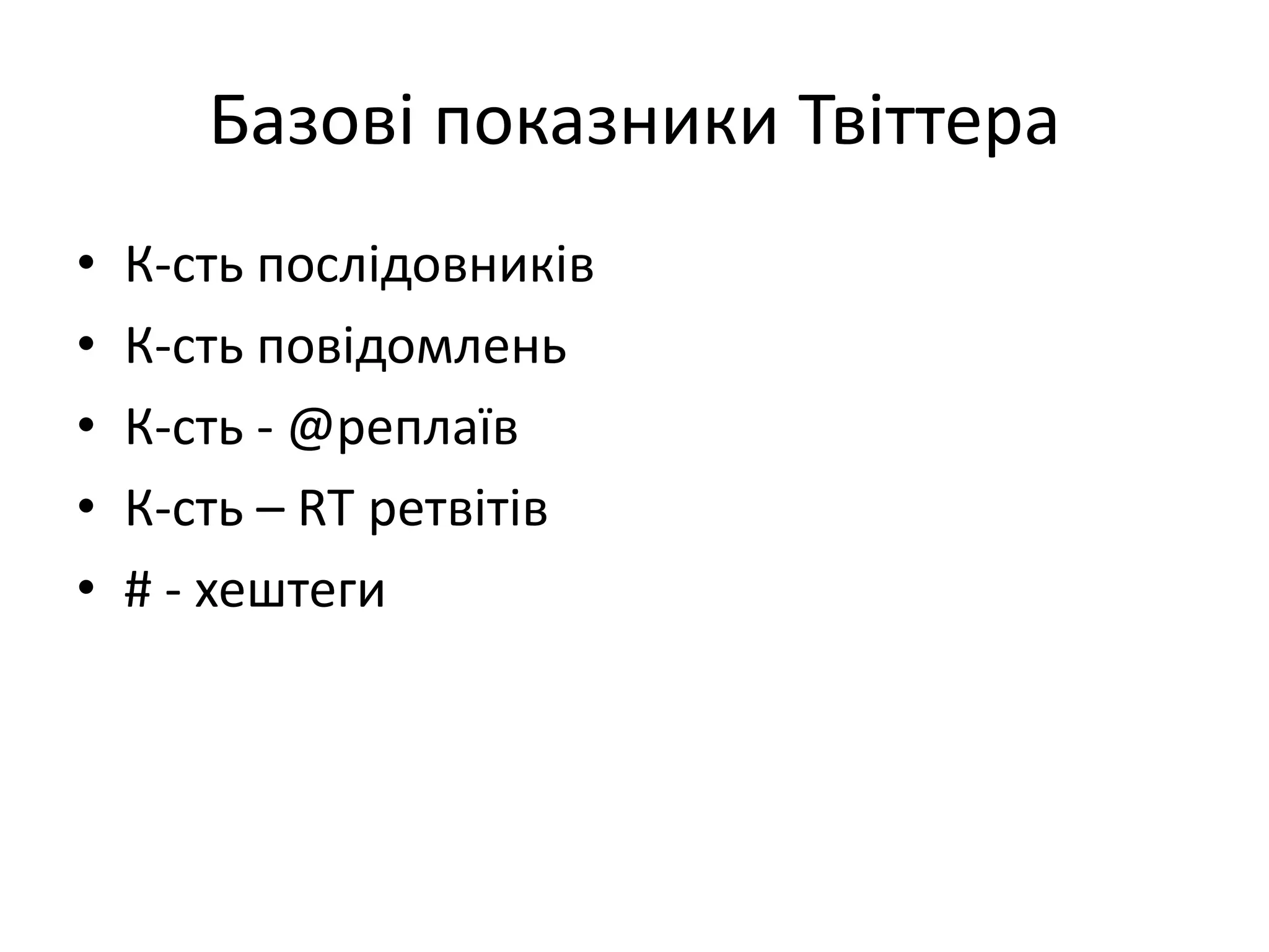 • http://twitteranalyzer.com/ - сервіс веб-аналізу