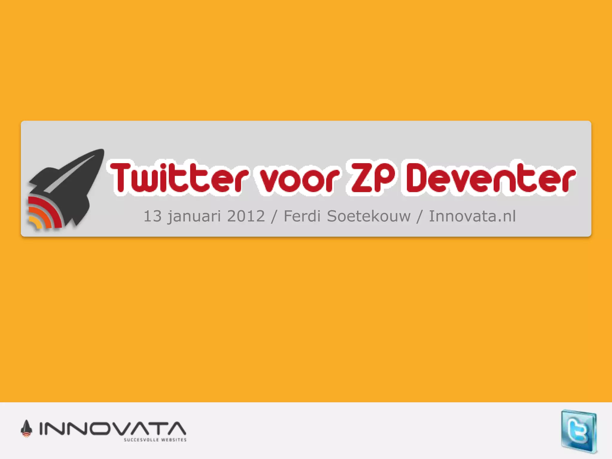 Deze presentatie is gegeven tijdens een training / workshop Twitter voor Zelfstandige Professionals Deventer, maar uiteraard ook zeer geschikt voor alle zzp-ers en mkb-ers die willen weten wat het nut van Twitter kan zijn en hoe Twitter nu in de praktijk werkt.