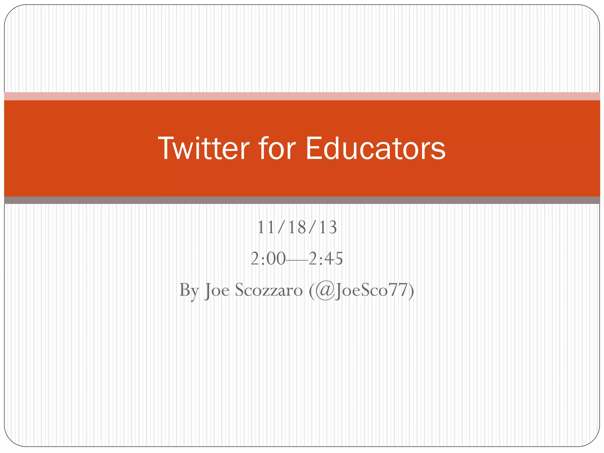 This document provides guidance on setting up a Twitter account for educational purposes, including an overview of the basic features and a step-by-step process for account creation. It also recommends following specific Twitter users and participating in weekly Twitter chats focused on education to help build a personal learning network. Guidelines are given for participating in a Twitter discussion using relevant hashtags.