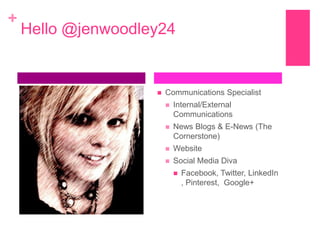 This document is a presentation about using Twitter for social media and education. It defines social media as conversations online and notes that Twitter is a popular platform, with over 107 million American users. The presentation teaches the basics of Twitter, including how to tweet, use handles, retweet, and apply hashtags. It encourages attendees to create a Twitter account, follow educational accounts, and discuss uses for Twitter in the classroom. Tips are provided for educators using social media, such as being mindful of privacy settings and not posting anything unsuitable. Resources for using Twitter tools and connecting with the educational organization are also included.