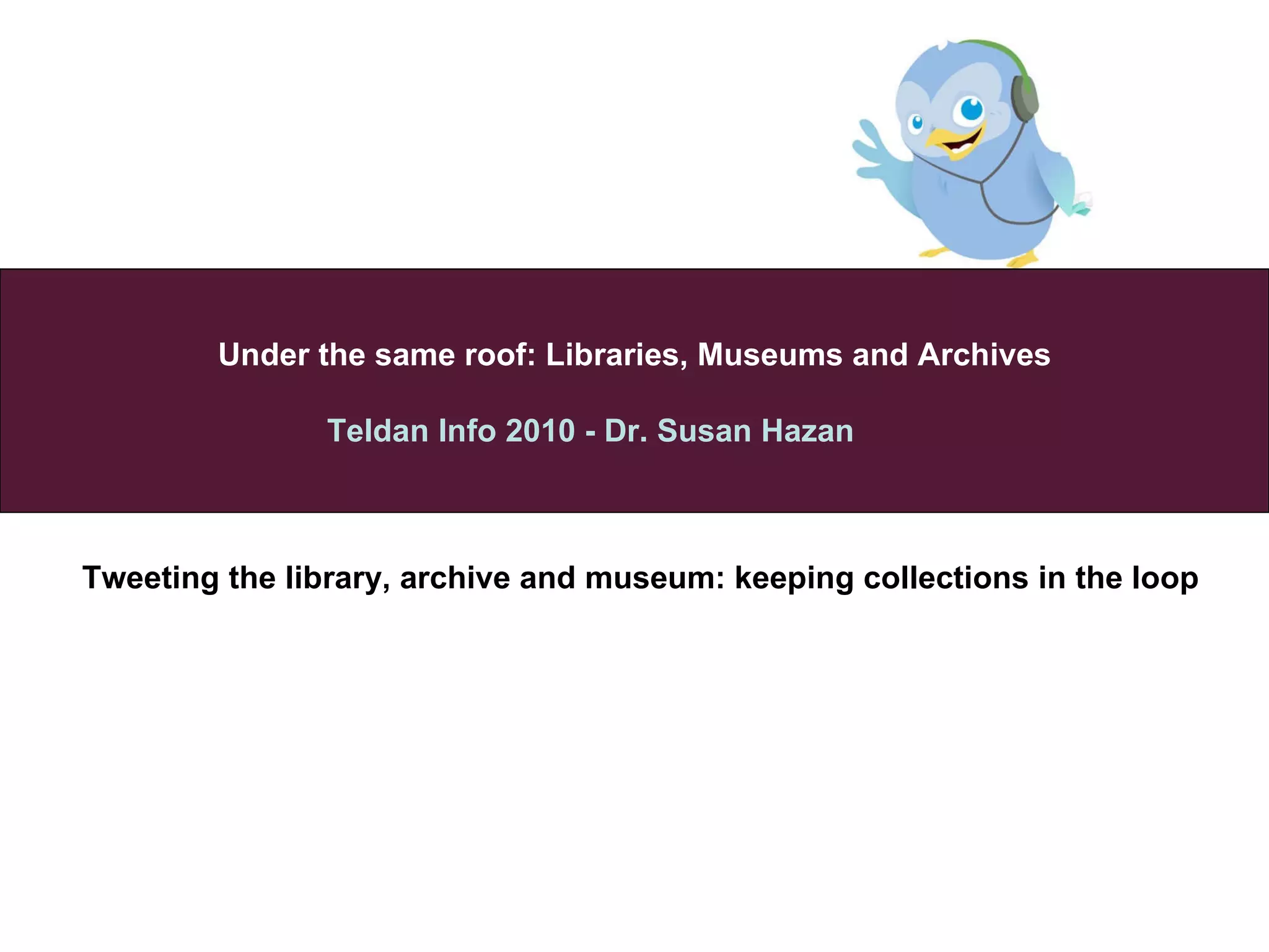 The document discusses the use of Twitter as a microblogging platform for libraries, museums, and archives to share real-time updates about their collections, events, and exhibitions. It highlights notable institutions on Twitter and provides tips for managing and analyzing their social media presence. Additionally, it addresses the complexities of engaging on Twitter and includes resources for understanding one's impact on the platform.