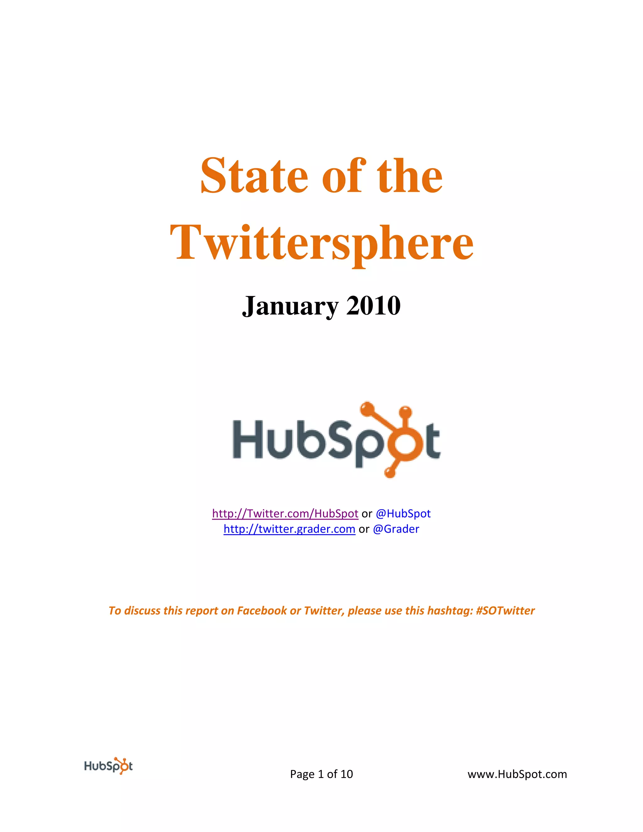This document summarizes the state of Twitter in January 2010. It finds that Twitter growth had slowed to 3.5% monthly from a high of 13% the previous year. The average Twitter user was now more engaged with more followers, followings, and tweets. Additionally, profiles were becoming more complete and international adoption was increasing significantly with 40% of top locations outside of North America.