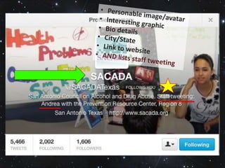 The CADCA Leadership Forum from February 4-8, 2013, emphasized the power of Twitter as a vital tool for community and social change, advocating for its effective use to nurture networks and share valuable information. Participants explored how to craft engaging tweets, utilize hashtags, and establish connections, while emphasizing Twitter etiquette and relevance for advocacy. The session included discussions on strategies for effective tweeting and encouraged attendees to leverage Twitter's capabilities for recognition and engagement.