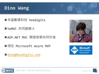 twMVC #25 –ASP.NET MVC A/B Testing http://mvc.tw