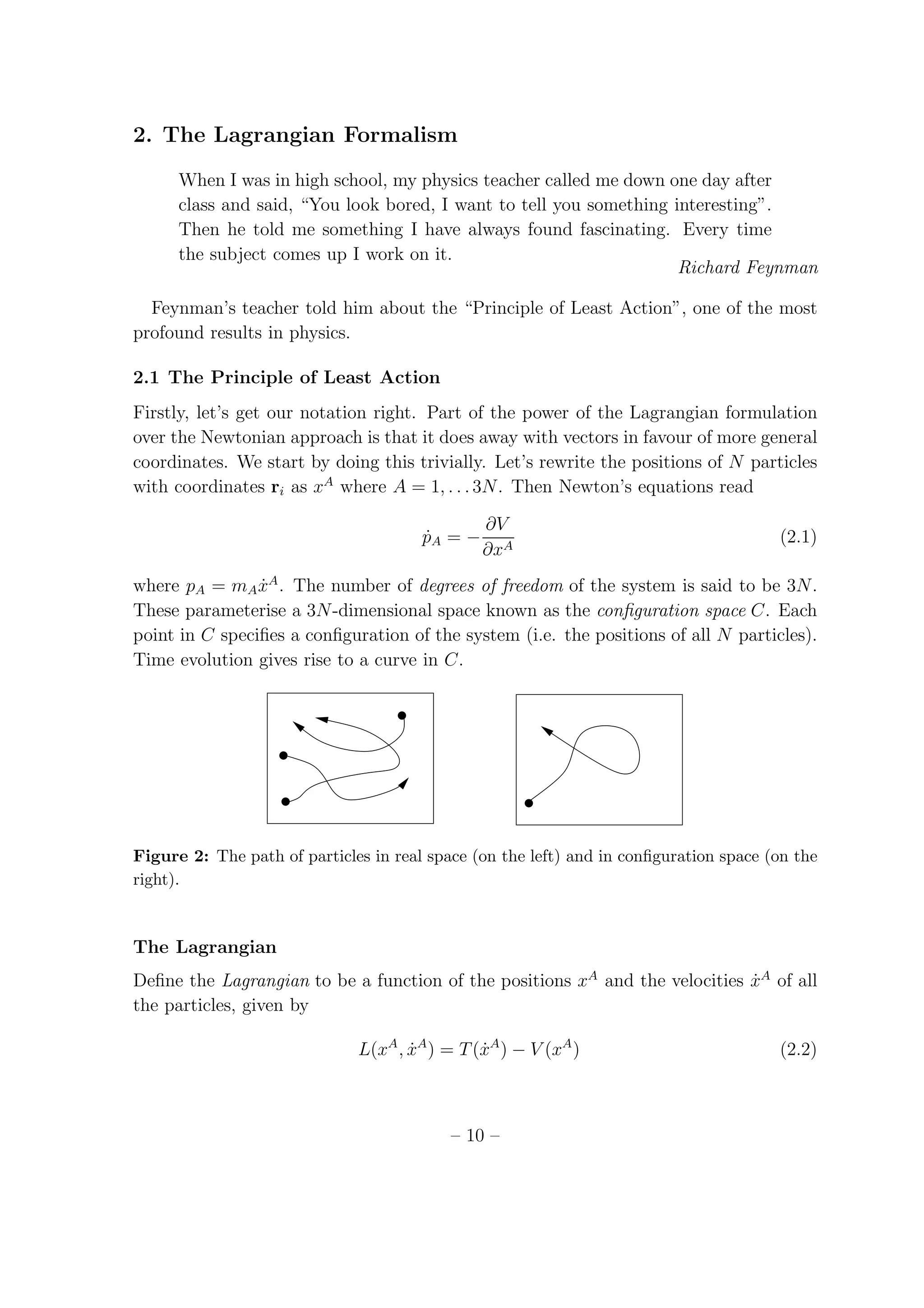 Richard Feynman's high school physics teacher introduced him to the principle of least action, one of the most profound concepts in physics. The principle states that among all possible paths a physical system can take between two configurations, the actual path taken will be the one that minimizes the action. The action is defined as the time integral of the Lagrangian over the path, where the Lagrangian is the difference between the system's kinetic and potential energies. This principle allows physics to be formulated in terms of variational calculus and is the foundation for classical mechanics, electromagnetism, general relativity, and other physical theories.