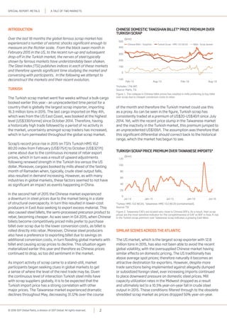 The global ferrous scrap market has experienced significant volatility over the last 18 months. Turkish and US scrap markets have seen large price fluctuations due to changing supply and demand dynamics with China, including periods of no activity in Turkey. New futures contracts have emerged to help market participants manage risks, but uncertainty remains high given ongoing oversupply issues and geopolitical risks like currency fluctuations following events in Turkey.