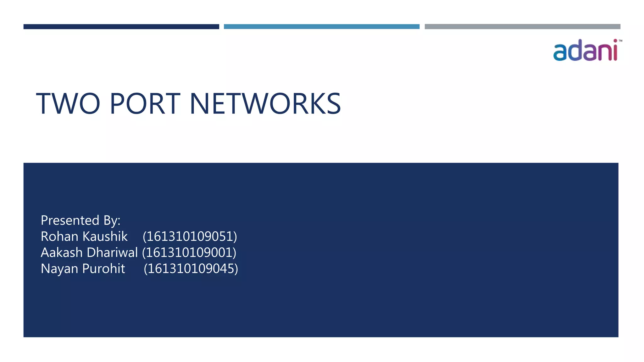 This document discusses two-port networks and their parameters. It defines a two-port network as having two ports through which current can enter or leave. The document introduces Z-parameters and Y-parameters as ways to relate the voltages and currents in a linear two-port network. Z-parameters express the terminal current in terms of voltage, while Y-parameters express the terminal voltage in terms of current. The document provides examples of calculating the Z-parameters and Y-parameters of simple resistor networks by opening or shorting the ports.