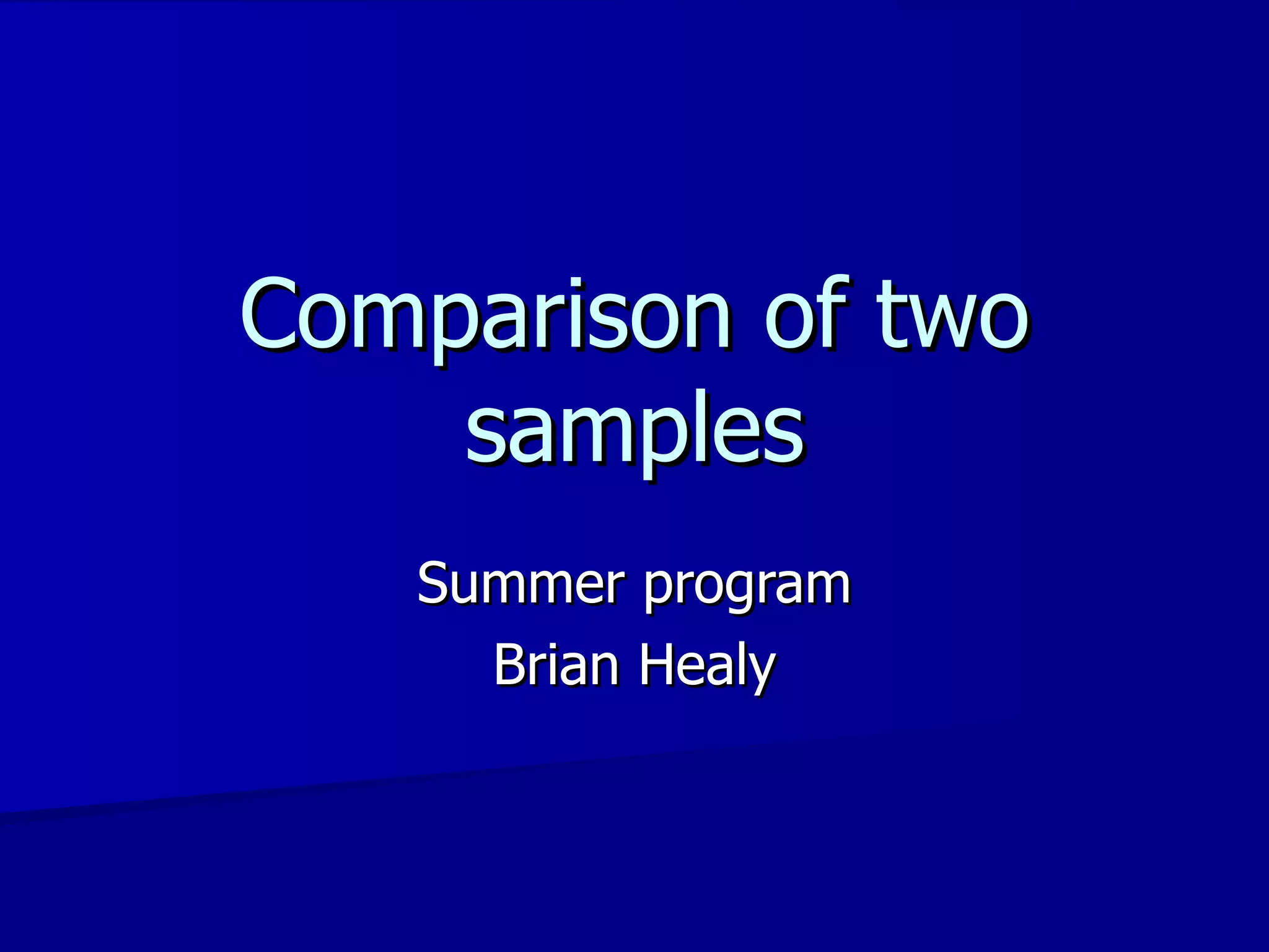 The document discusses comparing measurements from two physicians who measured tumor volumes. A paired t-test was used to test if the measurements significantly differed. The t-test showed no significant difference between physicians. Additionally, two sample t-tests were used to compare tumor volumes between different cancer types, finding significant differences between brain and breast cancers and brain and liver cancers.