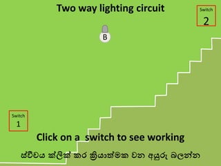 circuit Click on a switch to see working ස්වීචය ක්ලික් කර ක්රියාත්මක වන අයුරු බලන්න See the circuit B