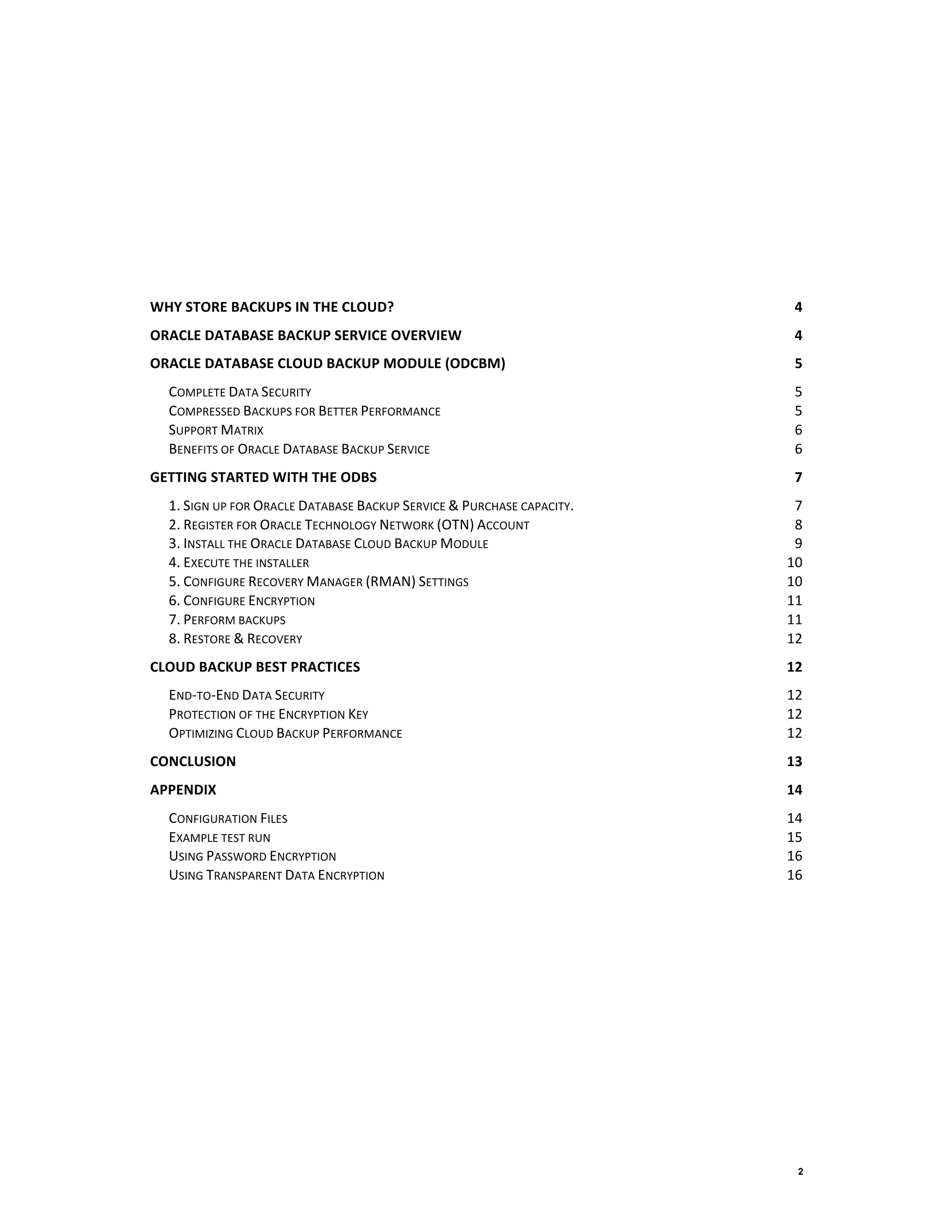 The document provides an overview of Oracle Database Backup Service (ODBS), which enables customers to securely store database backups in Oracle's cloud storage. It describes how the Oracle Database Cloud Backup Module (ODCBM) installs on the database server and uses familiar RMAN commands to transparently backup databases to ODBS and restore from ODBS. The document also outlines the steps to set up ODBS, including purchasing storage, installing ODCBM, configuring RMAN and encryption settings, performing backups, and restoring from backups.
